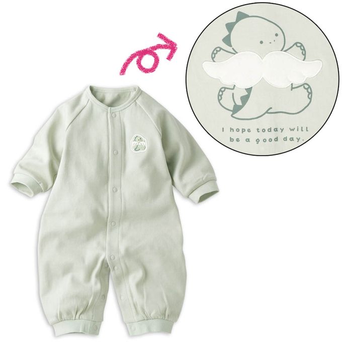 akachan honpo - 長袖兔裝-翻身神隊友 背後造型圖案-淺綠色