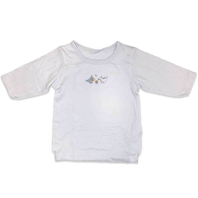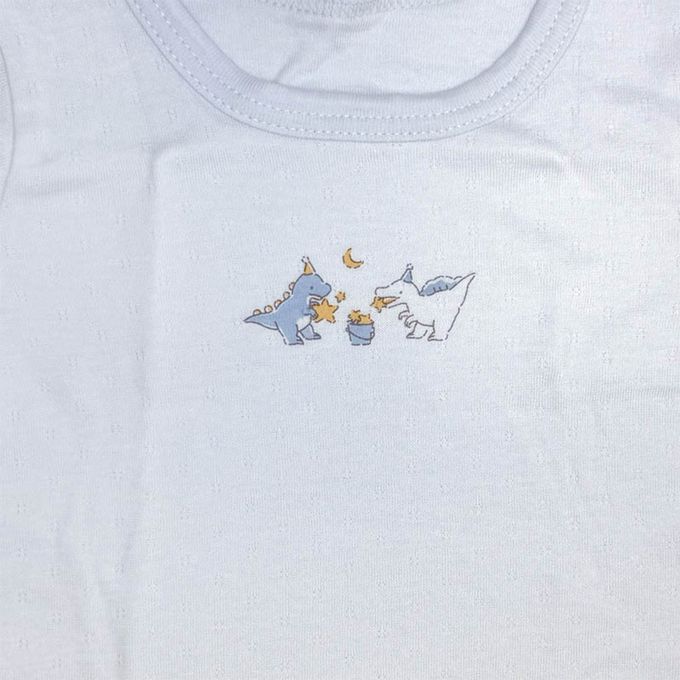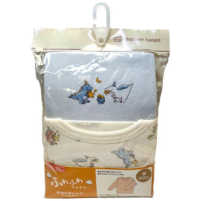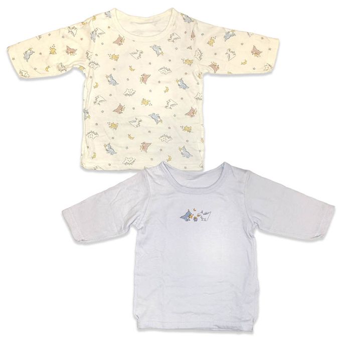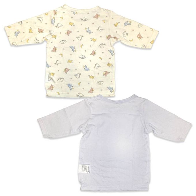 akachan honpo - 長袖圓領上衣2件組-蓬鬆棉 恐龍-淺藍色