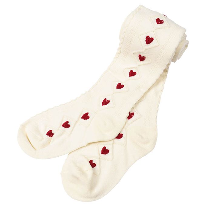 akachan honpo - 褲襪-菱形花紋 愛心-米白色