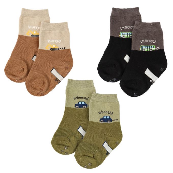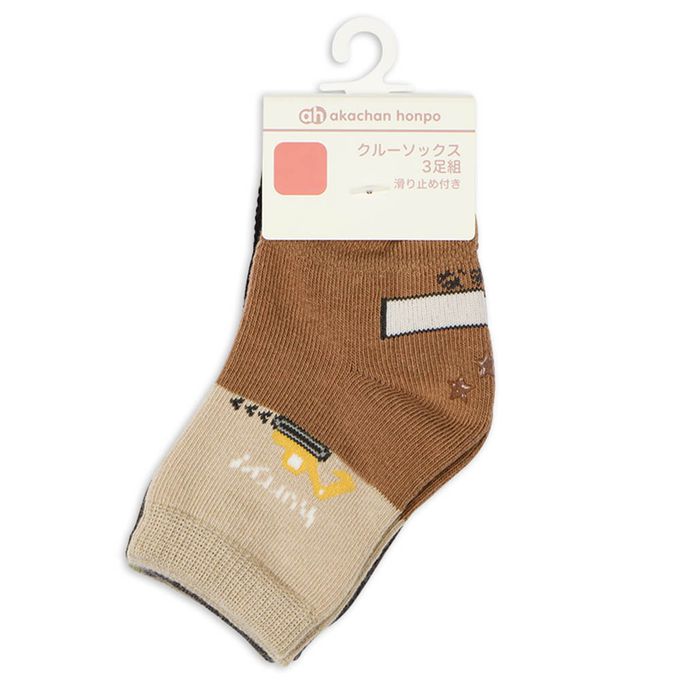 akachan honpo - 中長襪3雙組-小汽車-淺卡其色 (9~14cm)