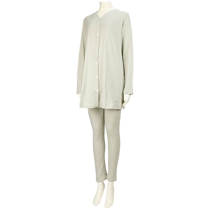 詳細尺寸:●尺寸(約・cm)=上衣【M-L】衣長75 胸圍95.6 袖長57 袖口寬11 【L-LL】衣長80 胸圍101.6 袖長58.5 袖口寬11.5 褲子【M-L】腰圍74 下襠長65 褲長98.6 【L-LL】腰圍78 下襠長67 褲長101.6●適用期間=産前~産後