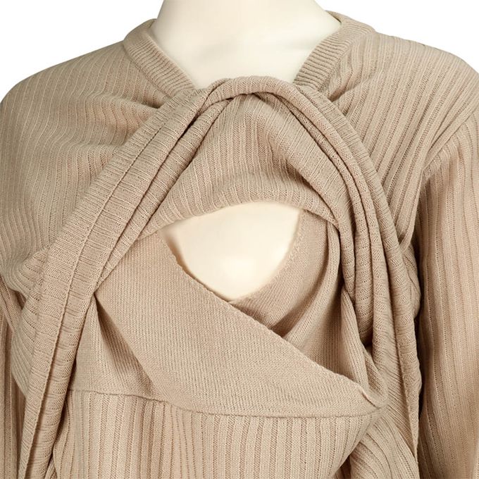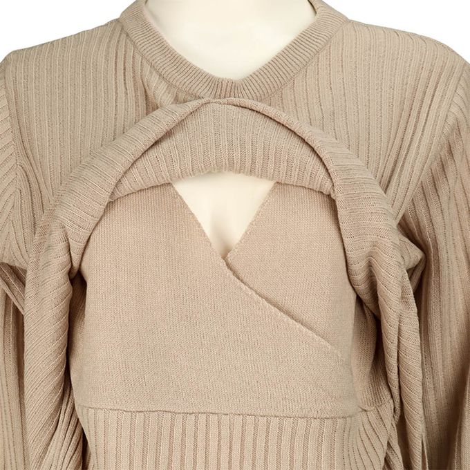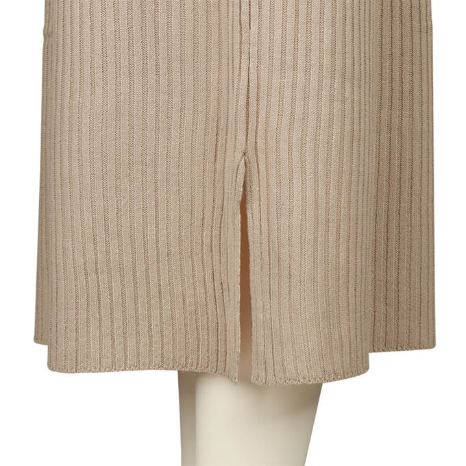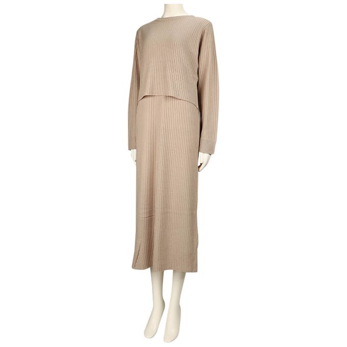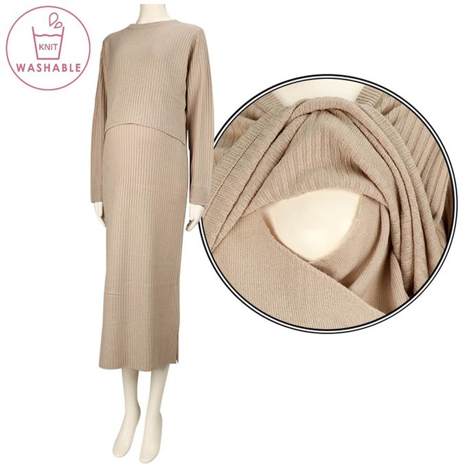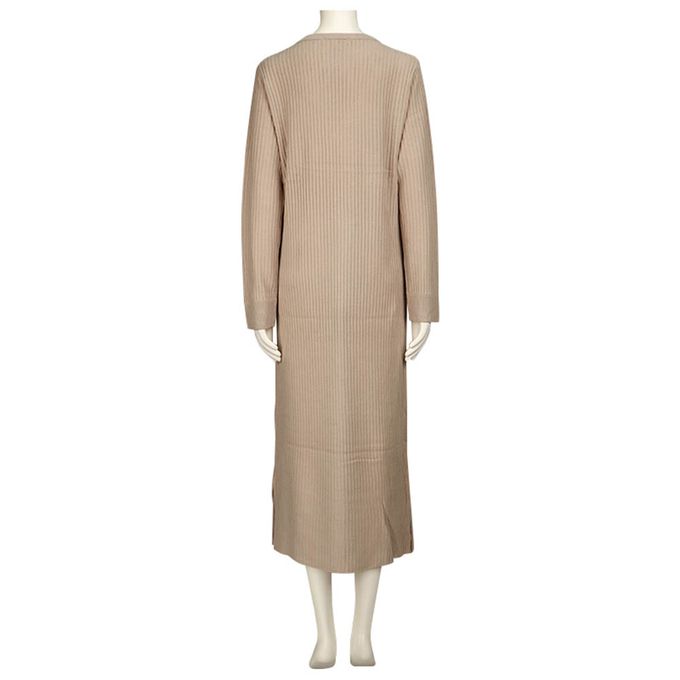 長袖羅紋針織洋裝--可水洗-淺卡其色