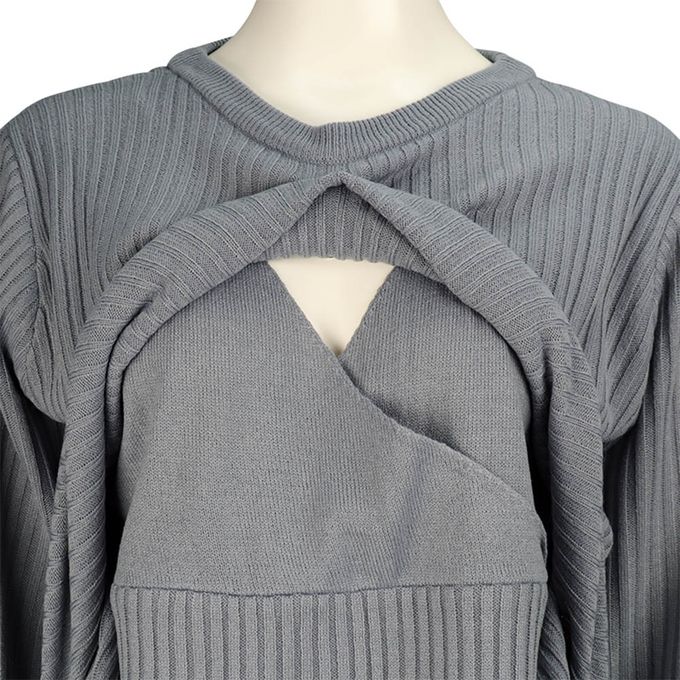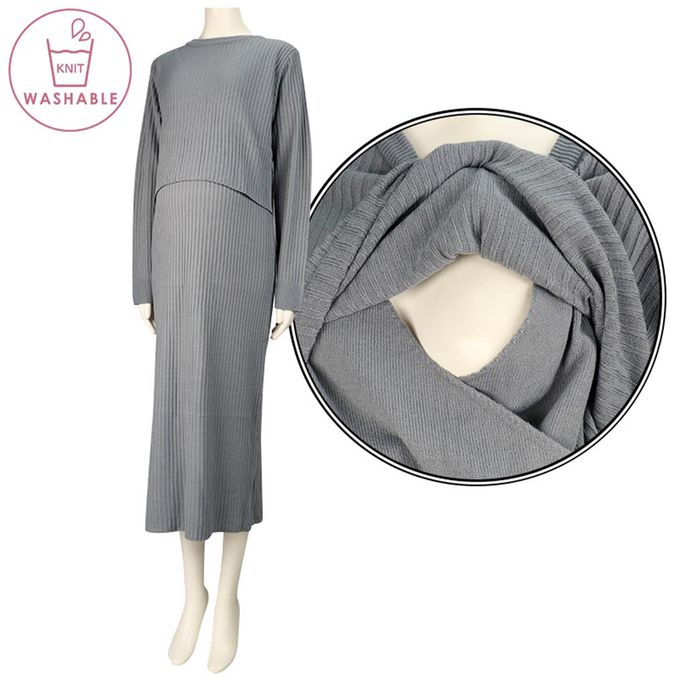 長袖羅紋針織洋裝--可水洗-淺藍色