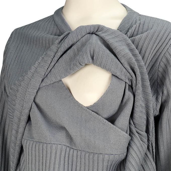 掀起正面的上衣,裡面為交叉式的哺乳口設計