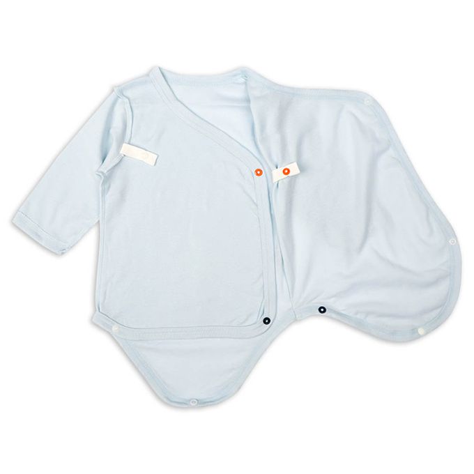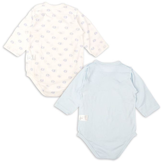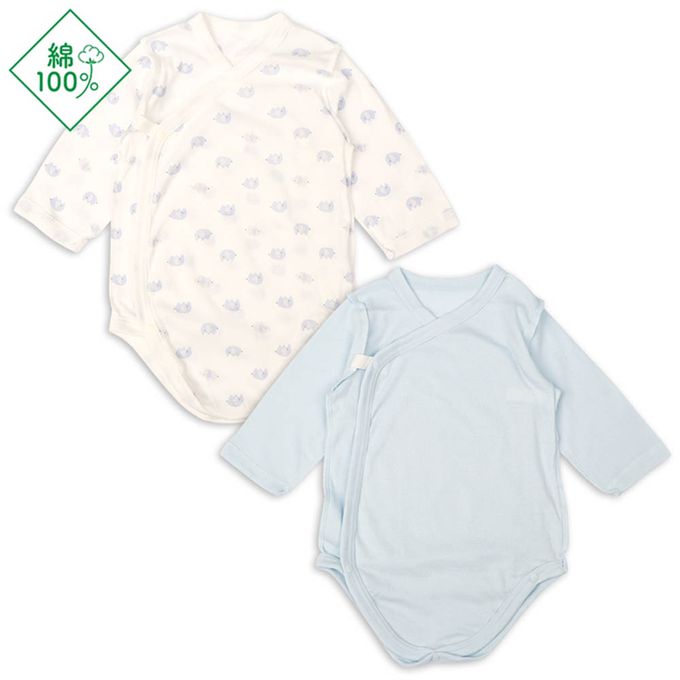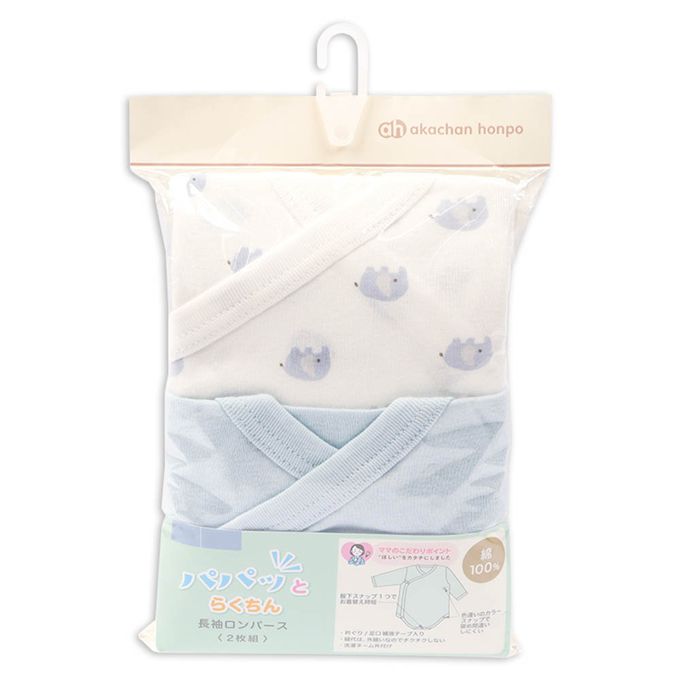 akachan honpo - 輕鬆方便長袖包屁衣2件組-前開式 大象-淺藍色