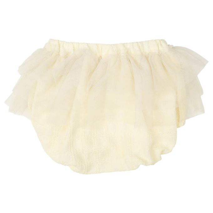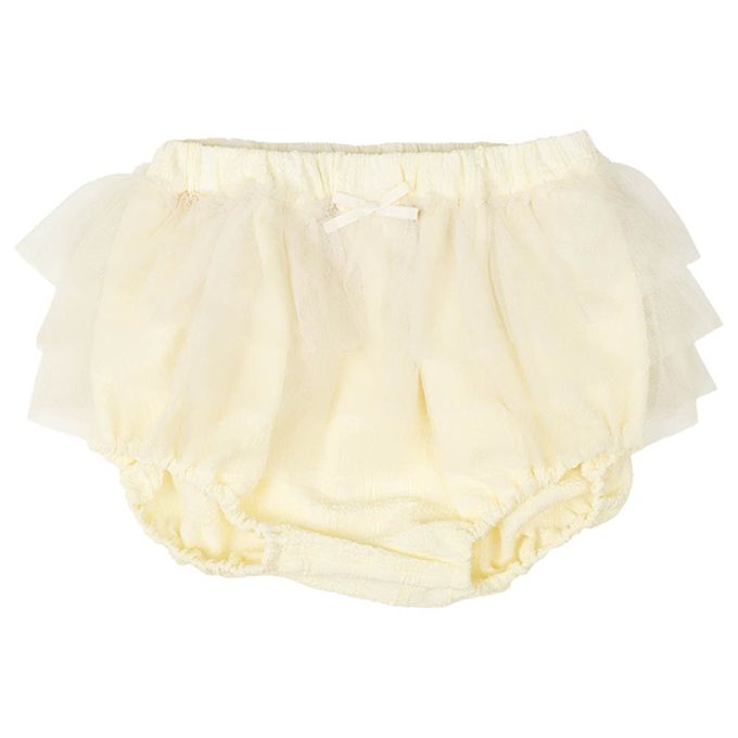 搭配3層可愛薄紗的抽皺設計平織短褲