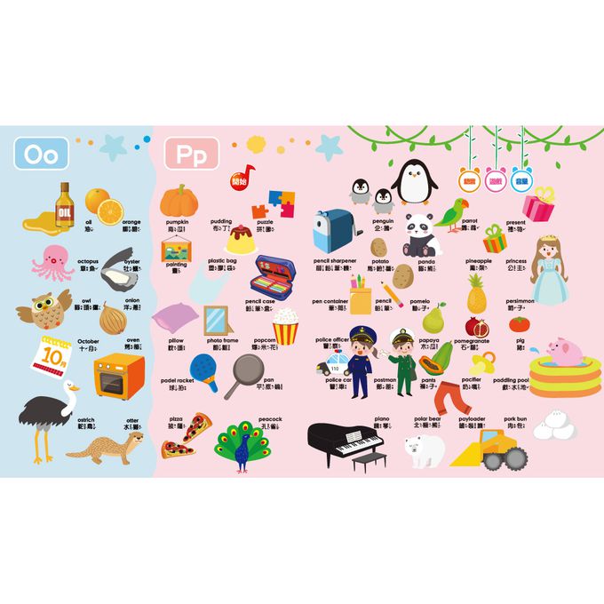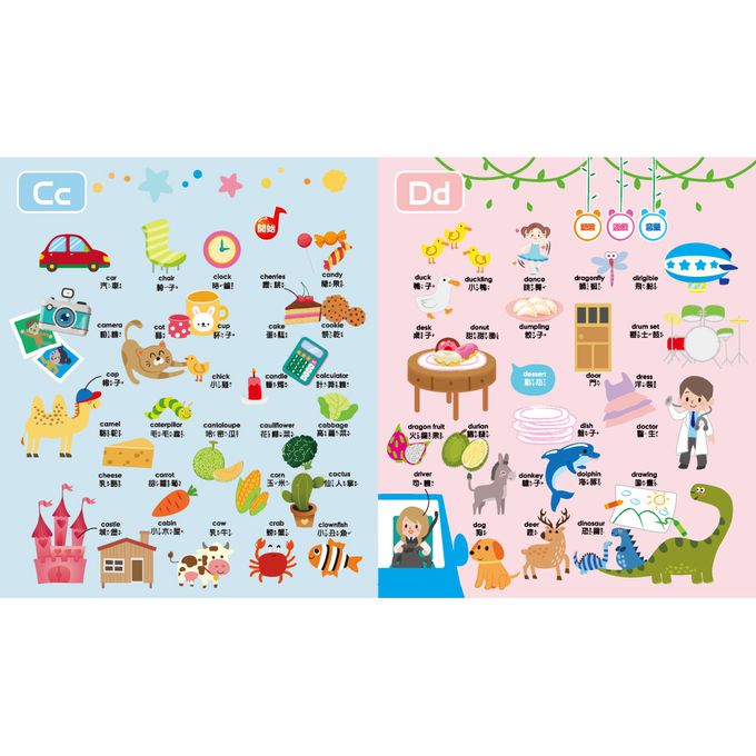 以字母為核心,搭配可愛插圖,收錄超過600個A~Z常用單字,內容豐富,輕鬆擴展孩子的詞彙量,是「最有趣的隨身字典」踏出愛上語言的第一步,開啟寶寶的認知世界。