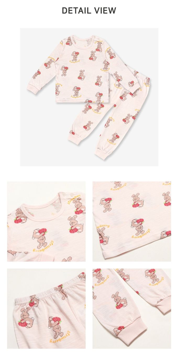 韓國 Mellisse - 韓製輕柔莫代爾混棉薄長袖家居服-手繪草莓兔-淺粉膚
