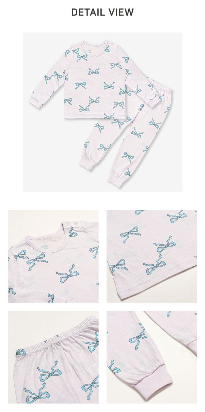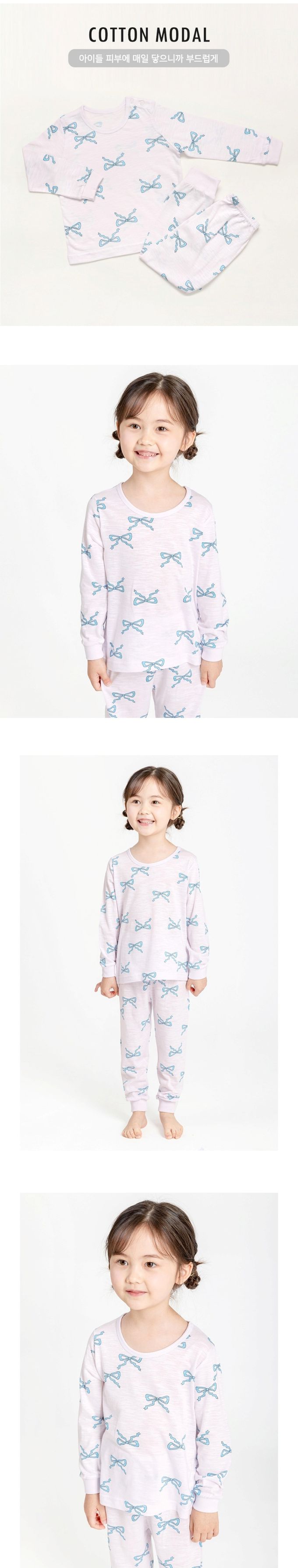 韓國 Mellisse - 韓製輕柔莫代爾混棉薄長袖家居服-水藍蝴蝶結-淺灰