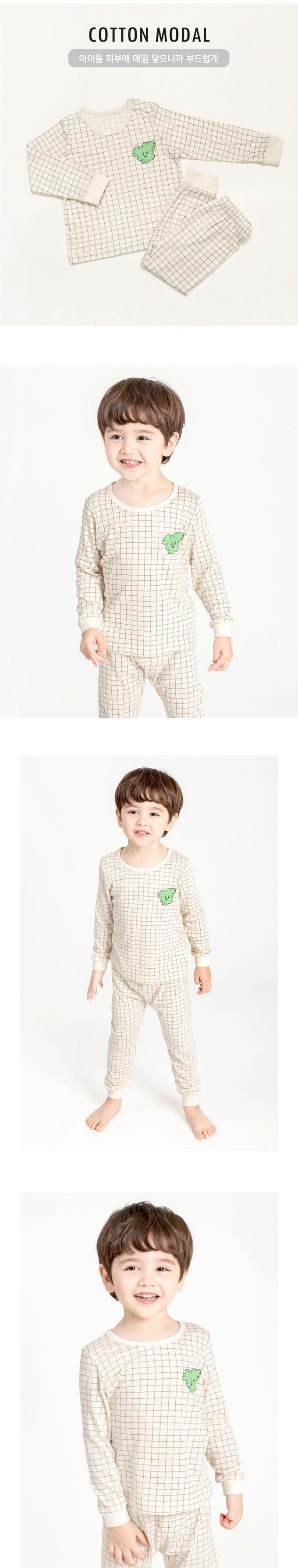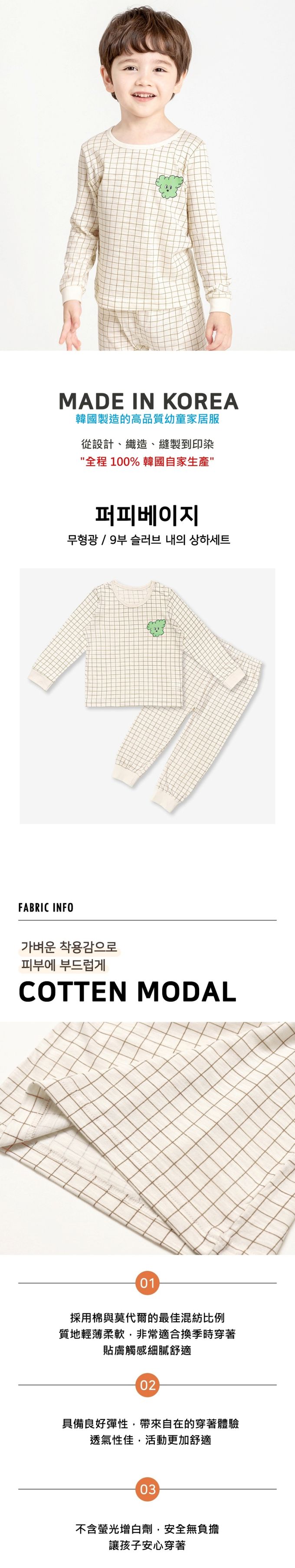 韓國 Mellisse - 韓製輕柔莫代爾混棉薄長袖家居服-格紋捲毛狗-米