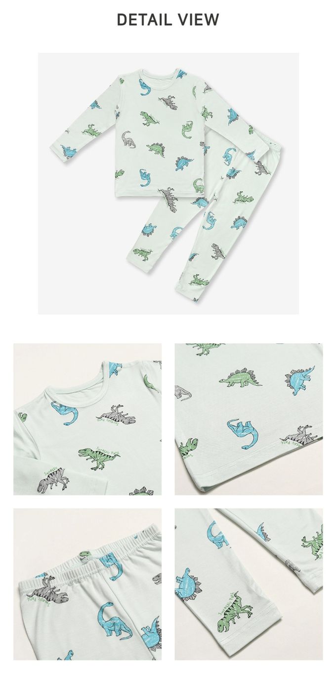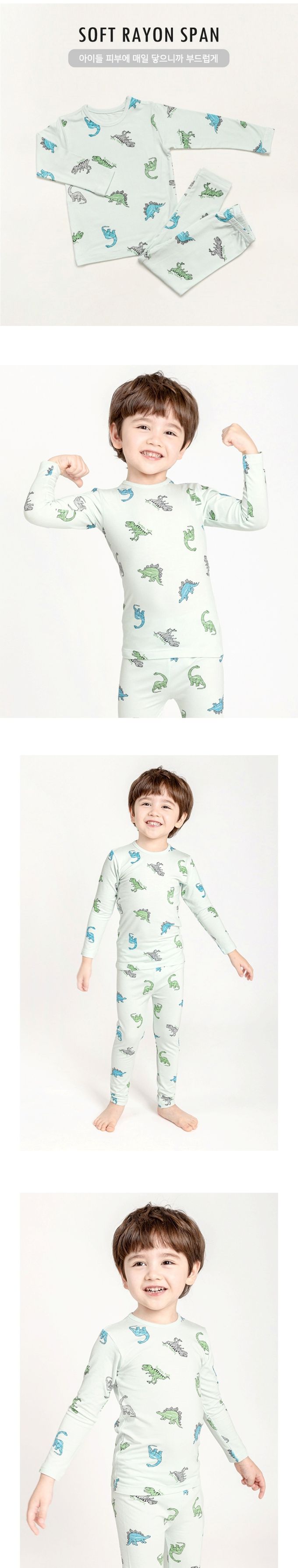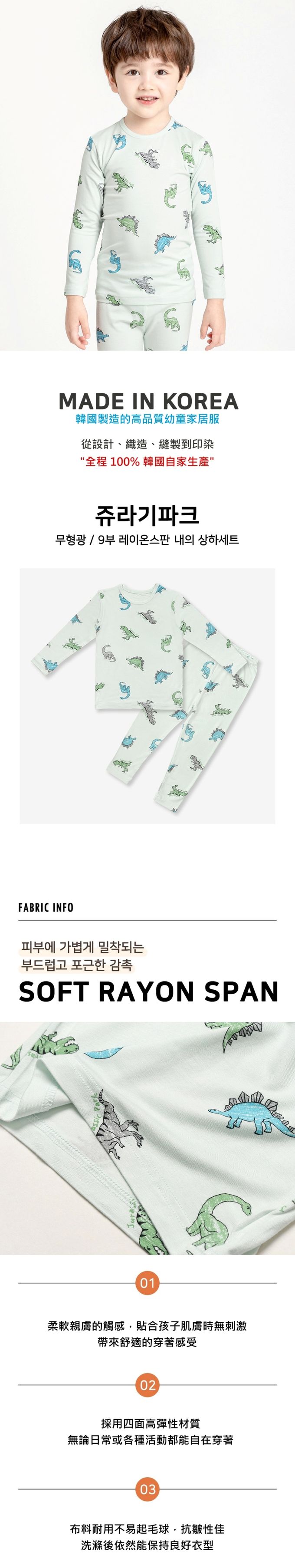 韓國 Mellisse - 韓製親膚嫘縈彈力長袖家居服-恐龍公園-淺綠