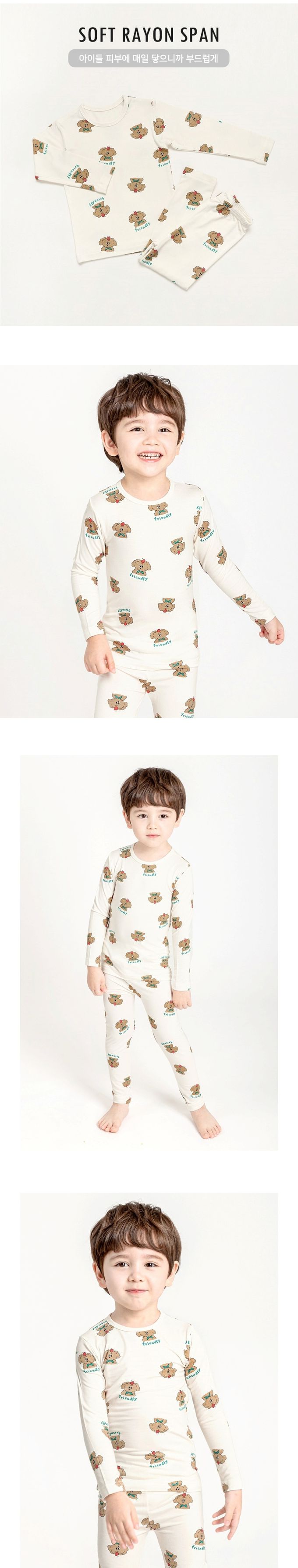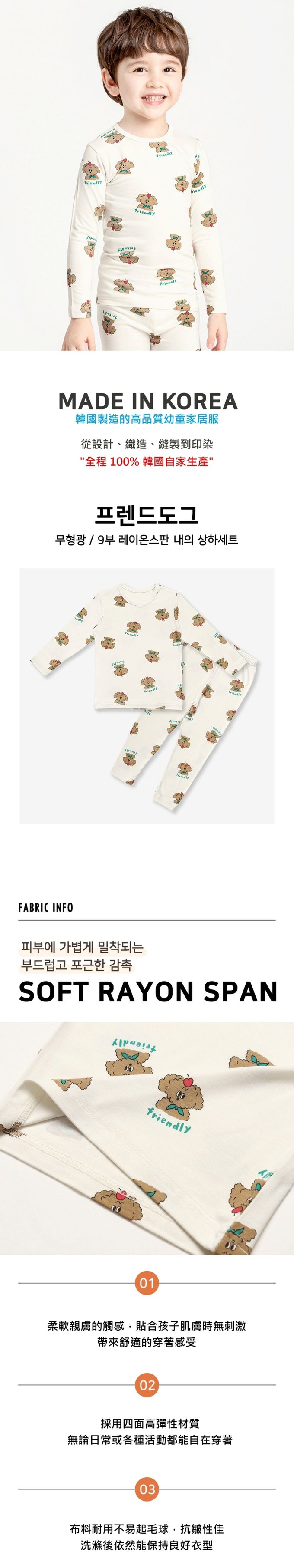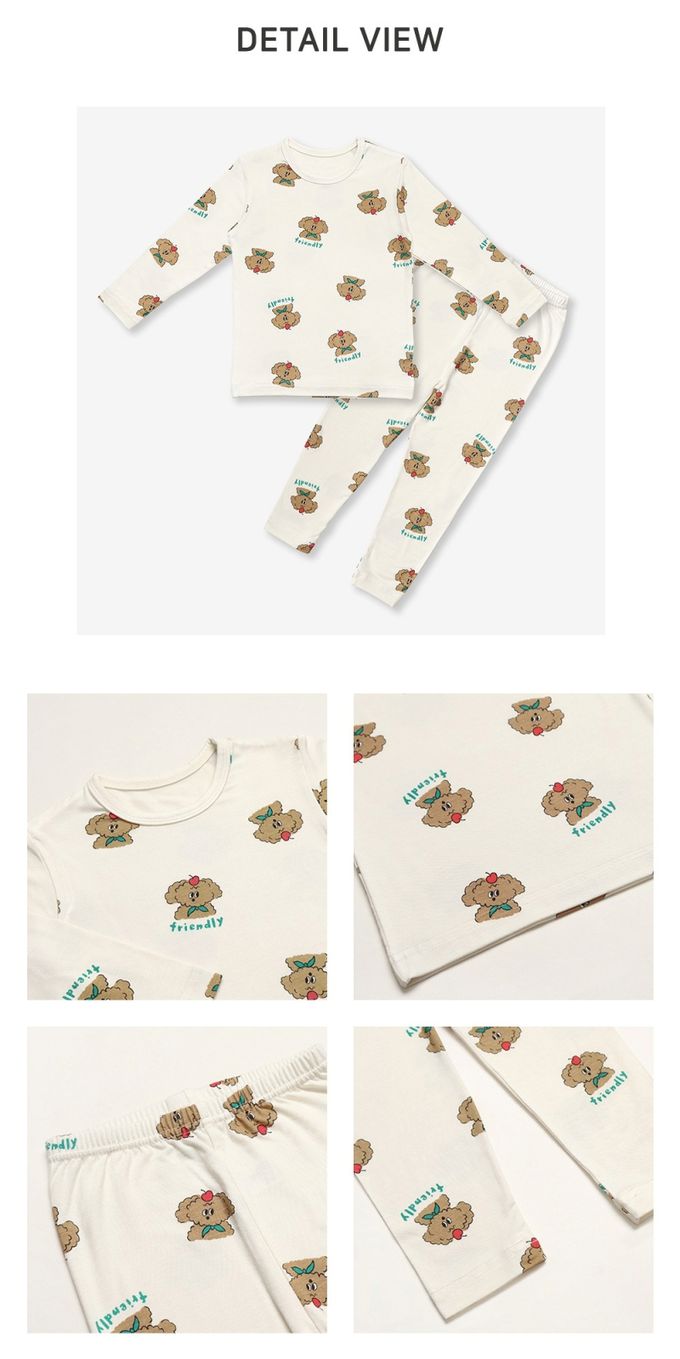 韓國 Mellisse - 韓製親膚嫘縈彈力長袖家居服-櫻桃狗狗-米