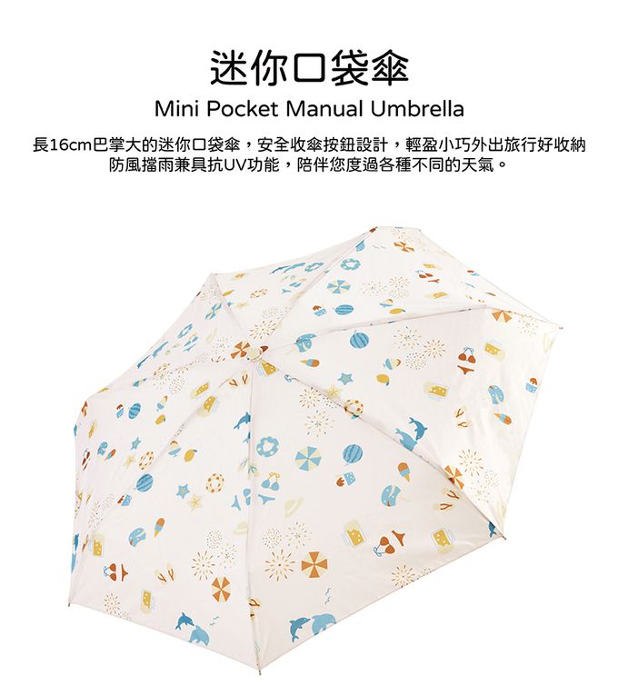 抗UV手開迷你口袋傘-夏日嘉年華-230g