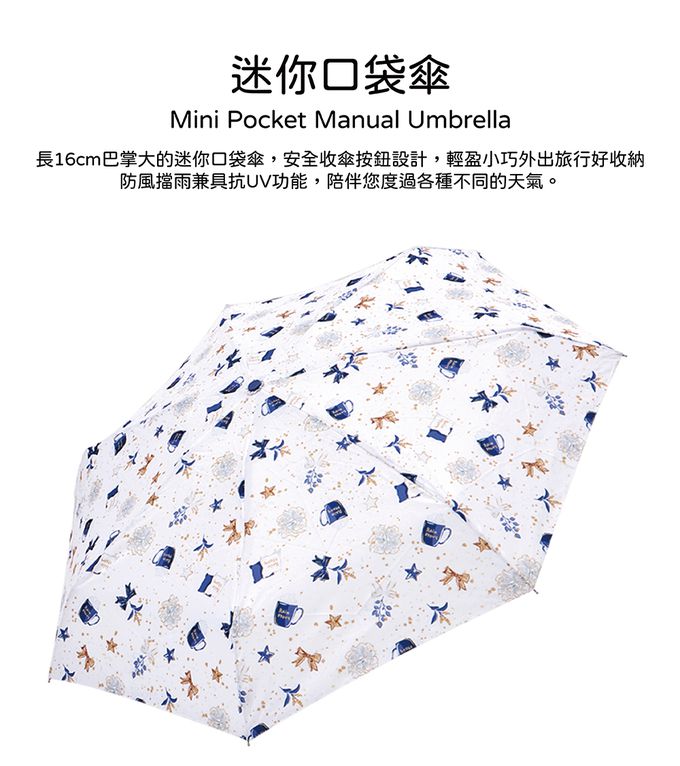 抗UV手開迷你口袋傘-Starry Life(白)-230g