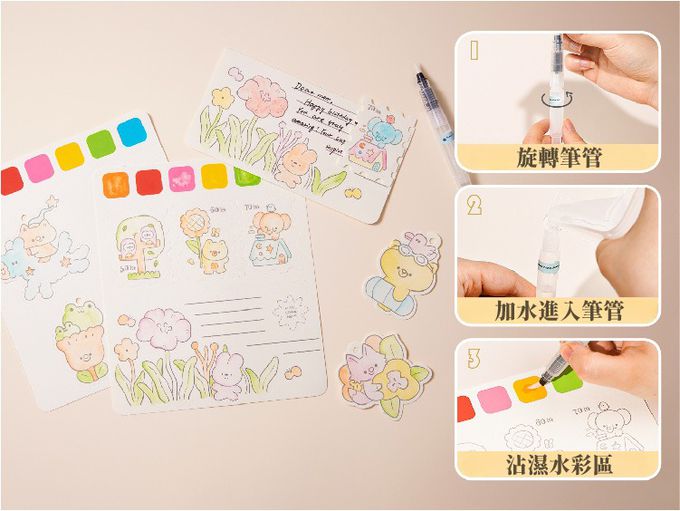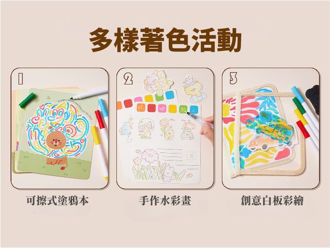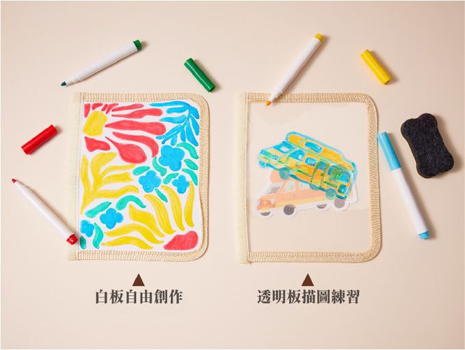 內含白板筆、透明板、水彩筆等,內容豐富。