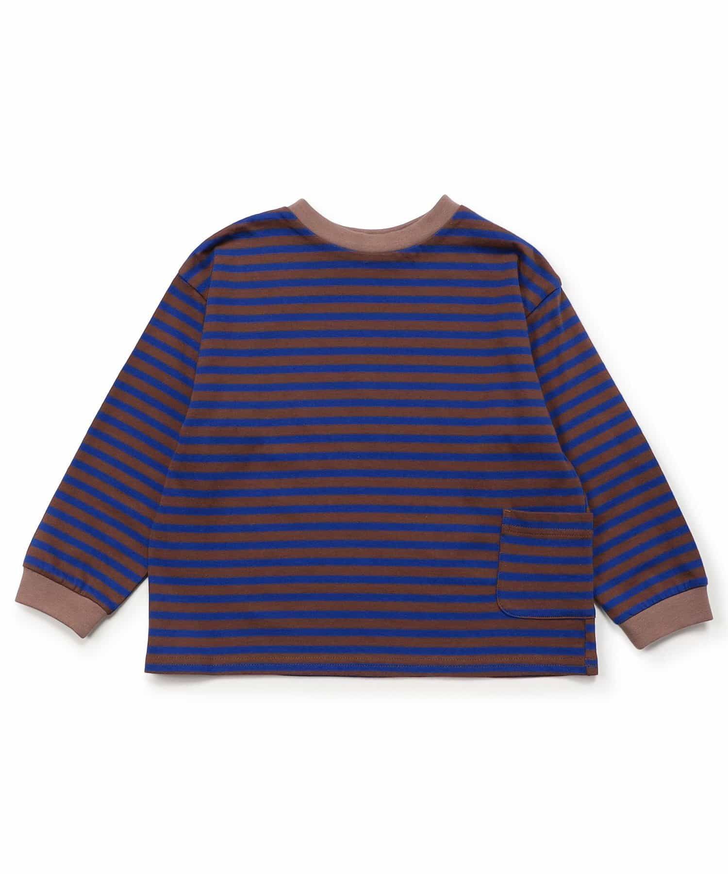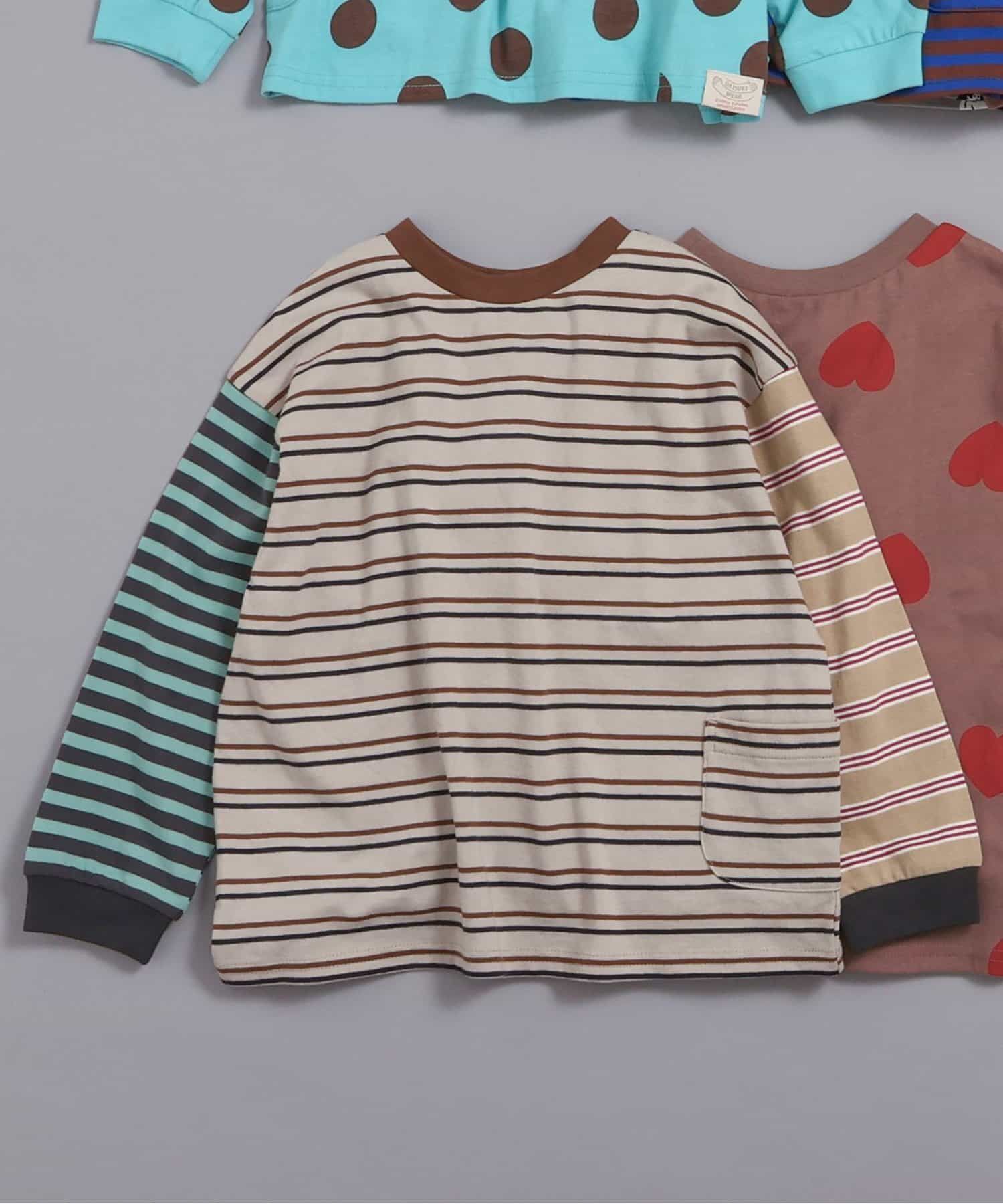 日本 BREEZE - 正反OK!前後兩穿長袖上衣-條紋撞色-卡其杏