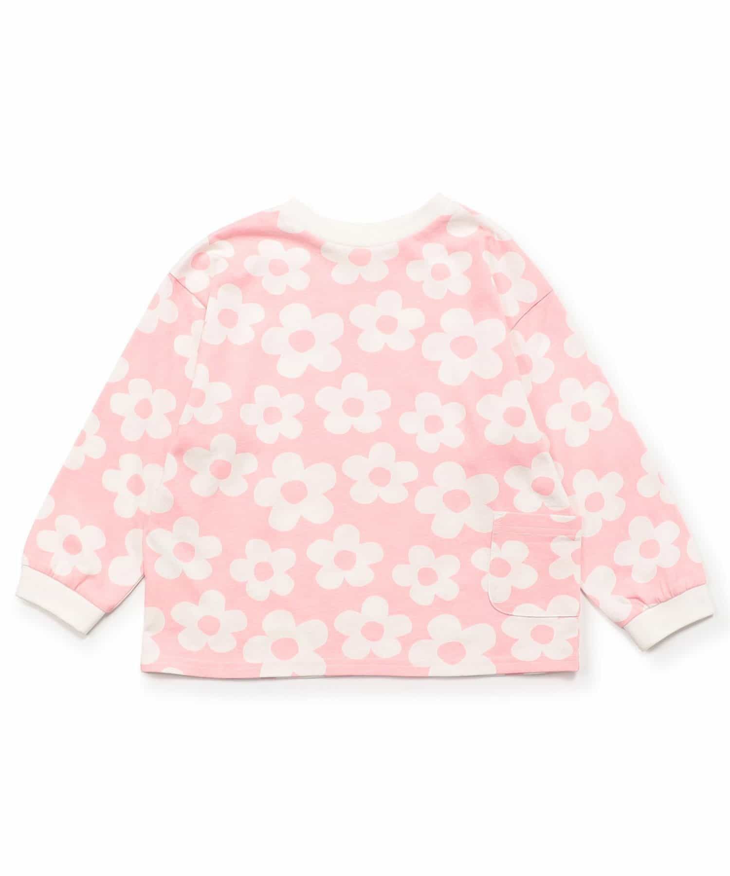 日本 BREEZE - 正反OK!前後兩穿長袖上衣-花朵-粉紅