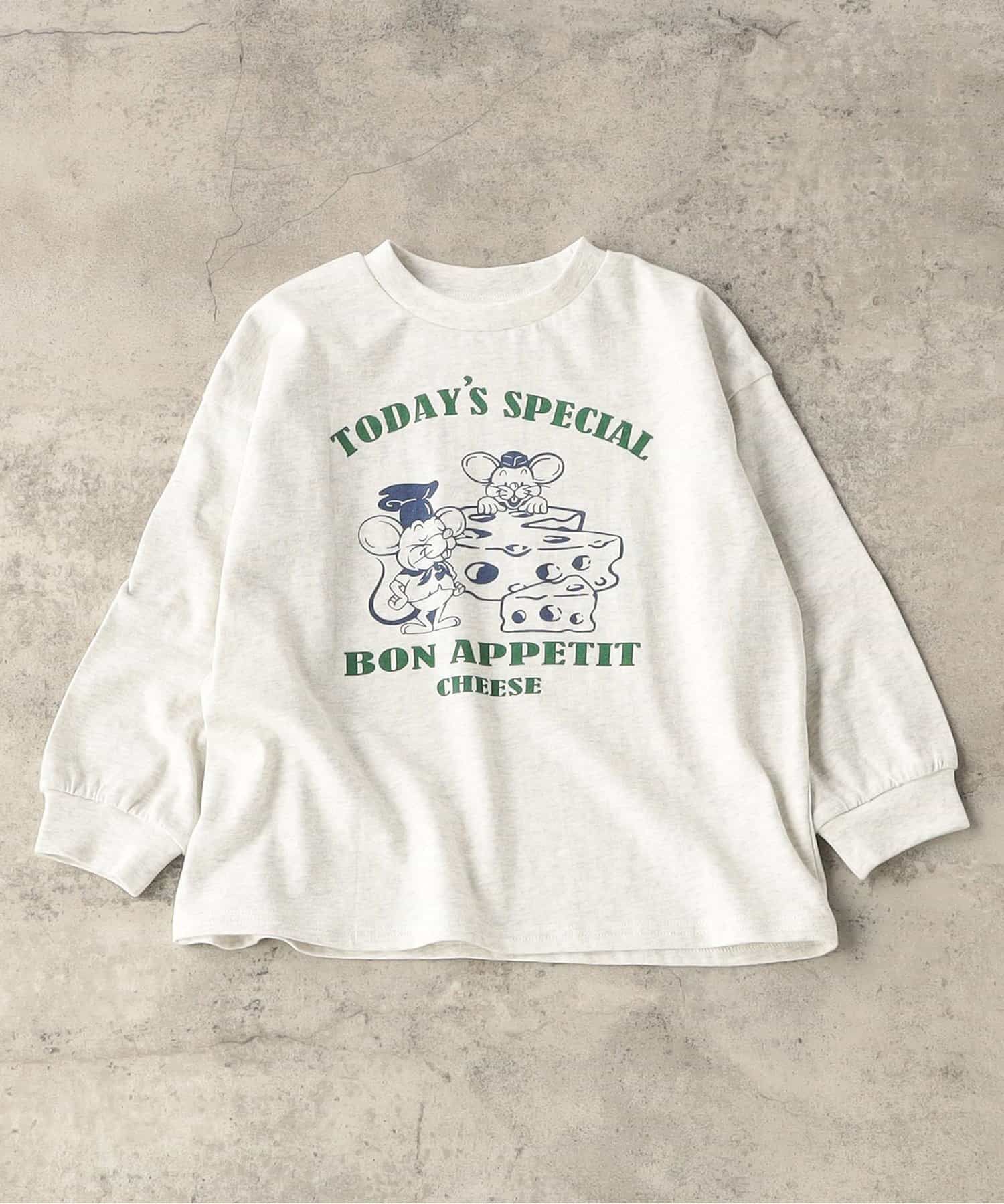 日本 BREEZE - 100%棉 美式印花長袖上衣-狗狗吃熱狗-粉紅