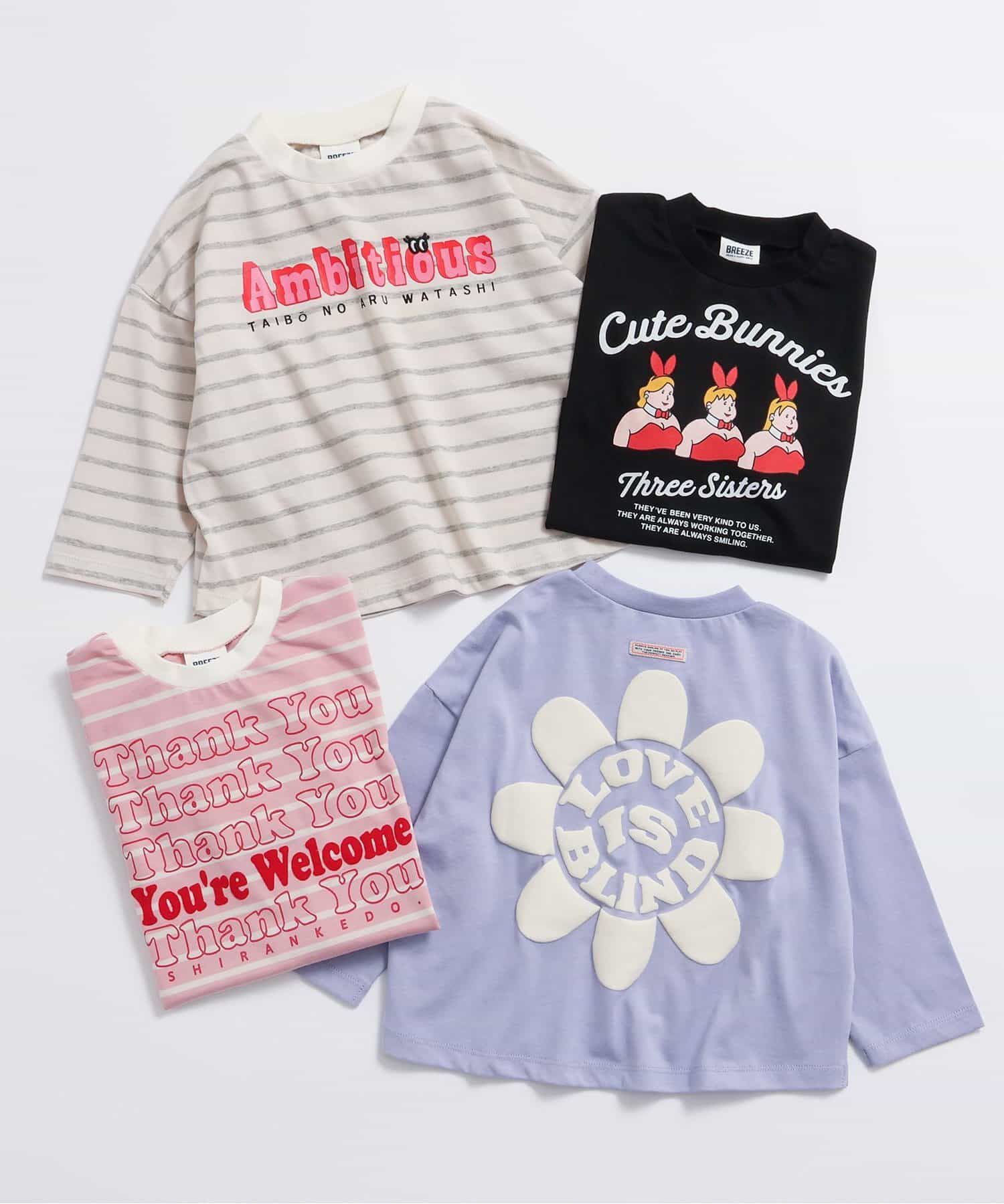 日本 BREEZE - 100%棉 可愛女孩印花長袖上衣-Thank You-粉紅