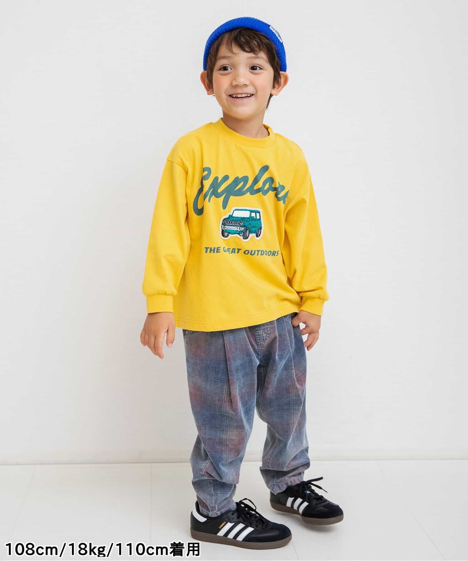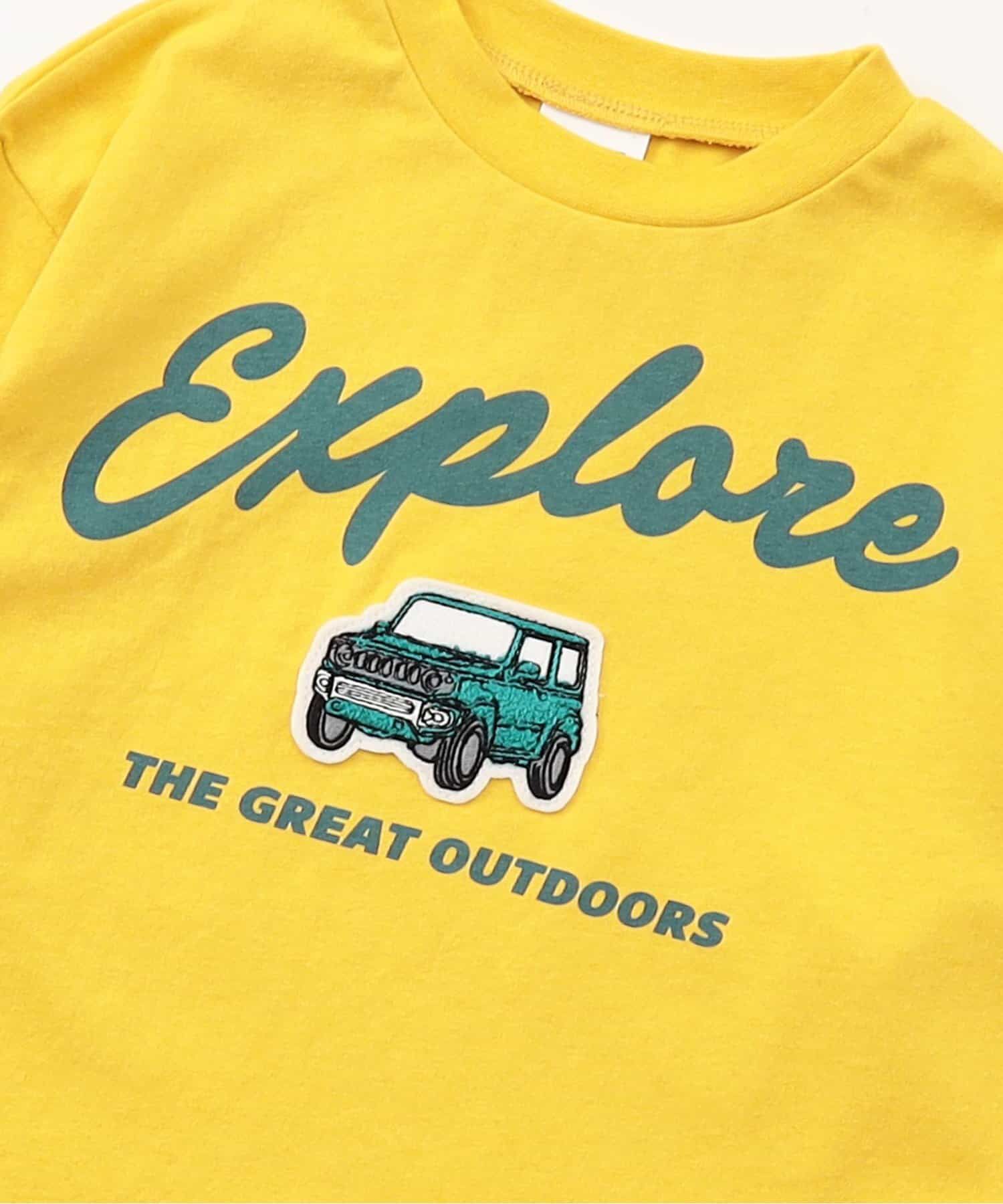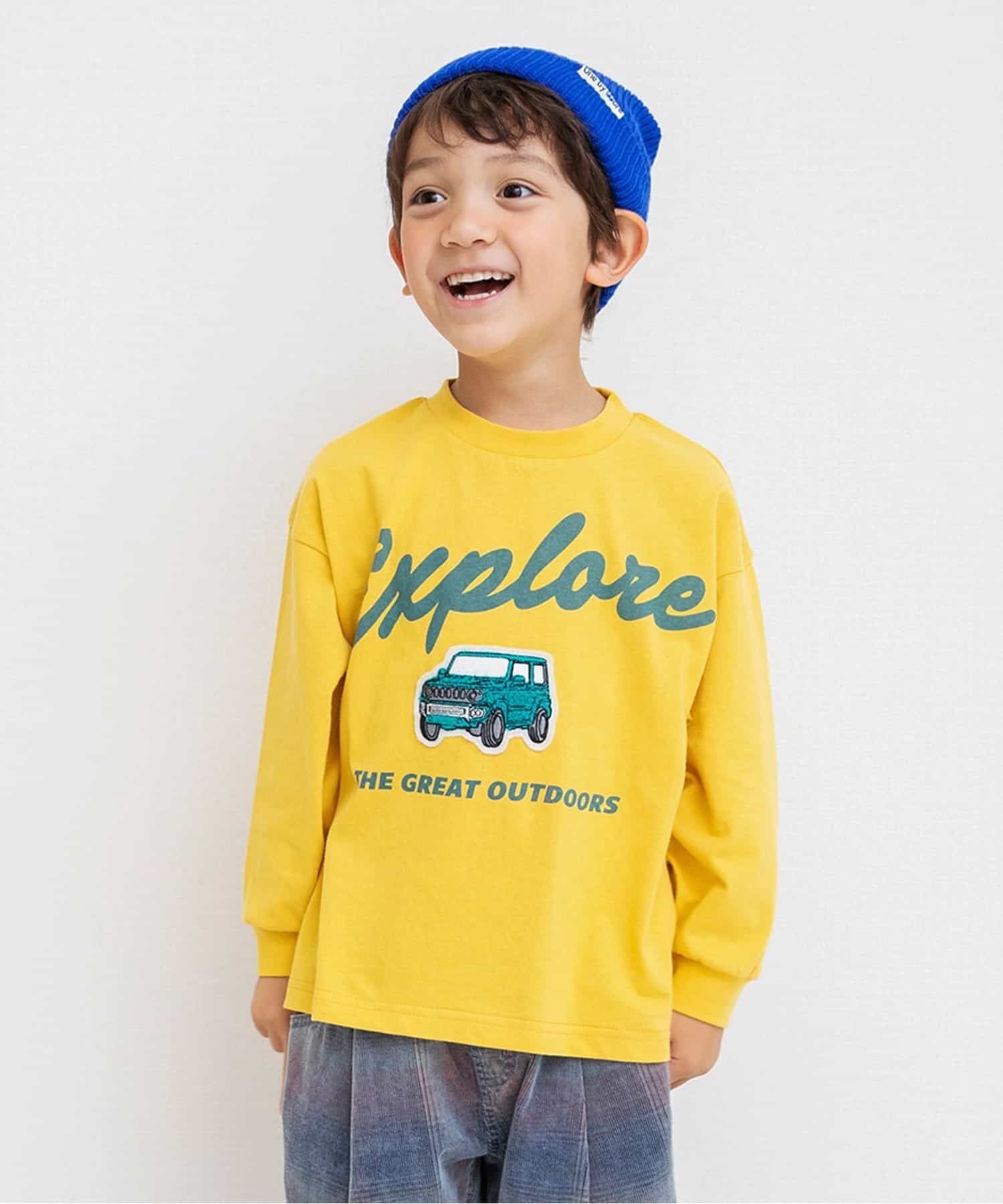 日本 BREEZE - 100%棉 立體刺繡貼布長袖上衣-車車-黃