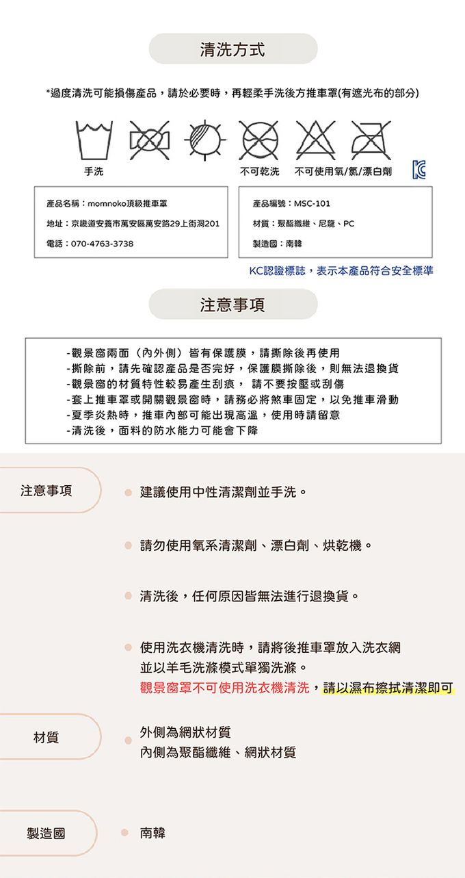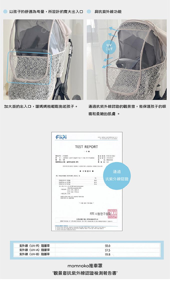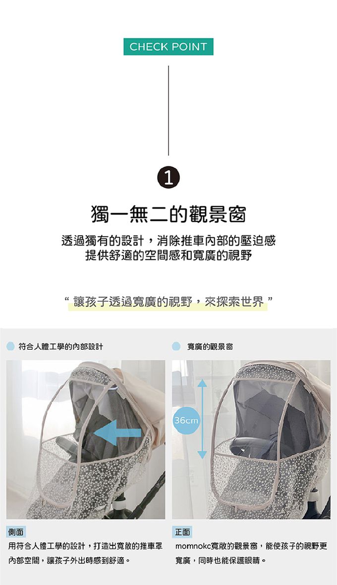 Momnoko 防風防蚊二合一推車罩米色白兔/拿鐵色奶白花,三種可愛款式可挑選◎ 首創可拆式推車罩,防風防蚊二合一◎ 符合人體工學的內部設計,空間寬敞◎ 抗紫外線景觀窗,保護孩子靈魂之窗及嫩肌膚◎ 採用特殊工藝面料,表層防潑水◎ 無毒加大透氣孔設計,保持通風商品規格材質:(外層)網狀材質,(內層)聚脂纖維、網狀材質尺寸:適用於市售大多數推車適用年齡:0歲以上使用年限:10年產地:韓國