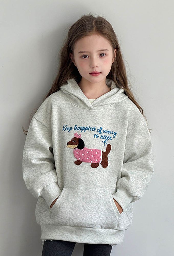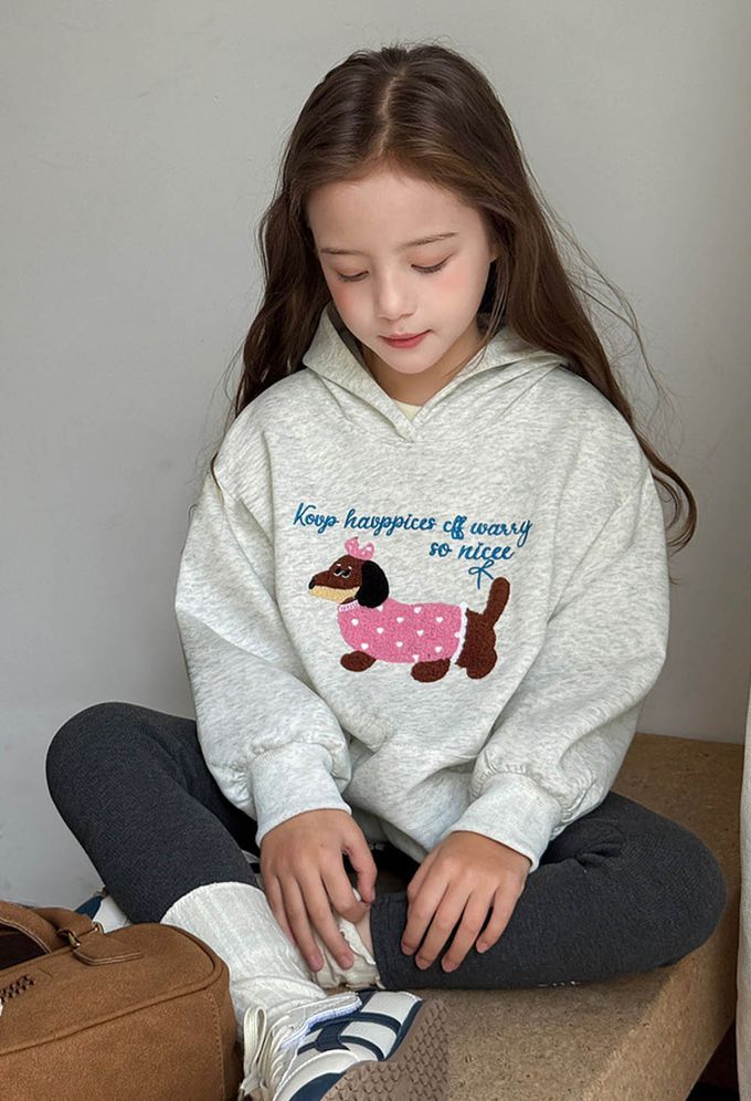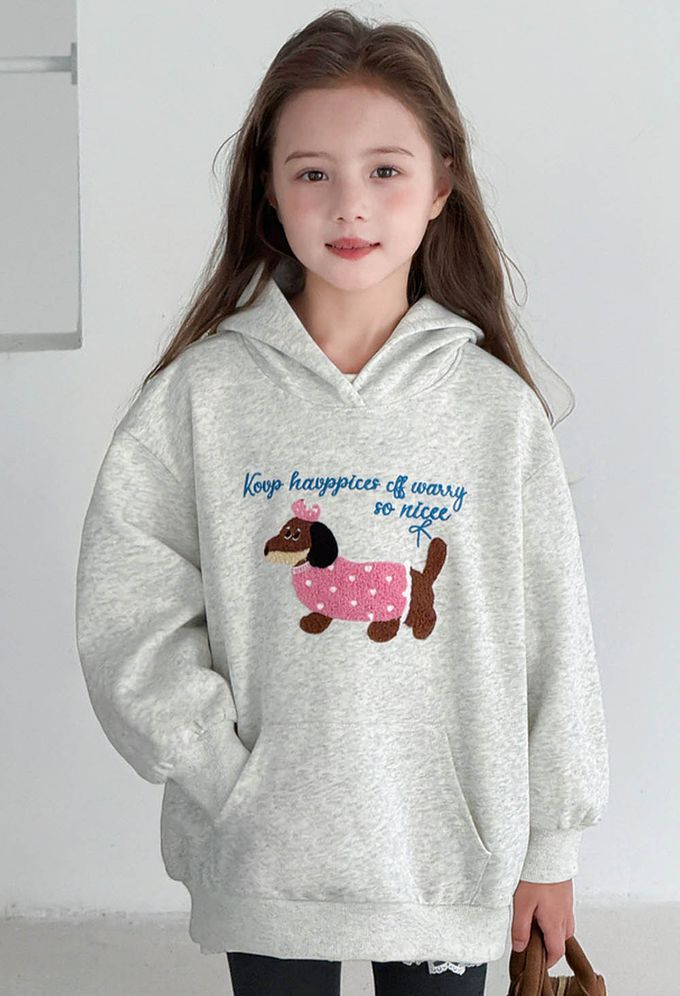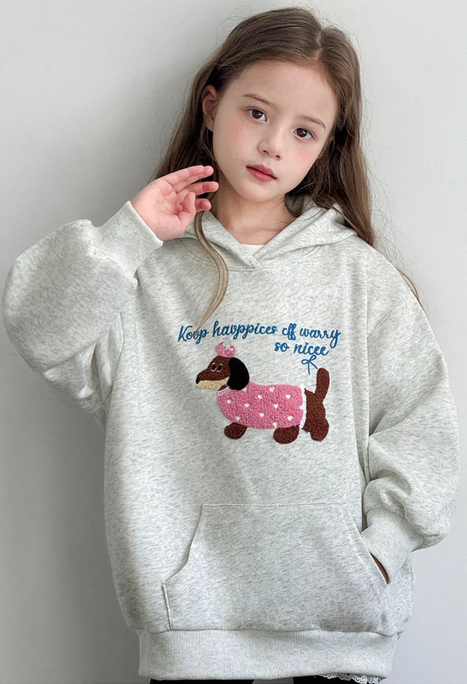 TUTU - 柔軟Q彈中長版連帽長袖上衣-可愛小狗-灰色