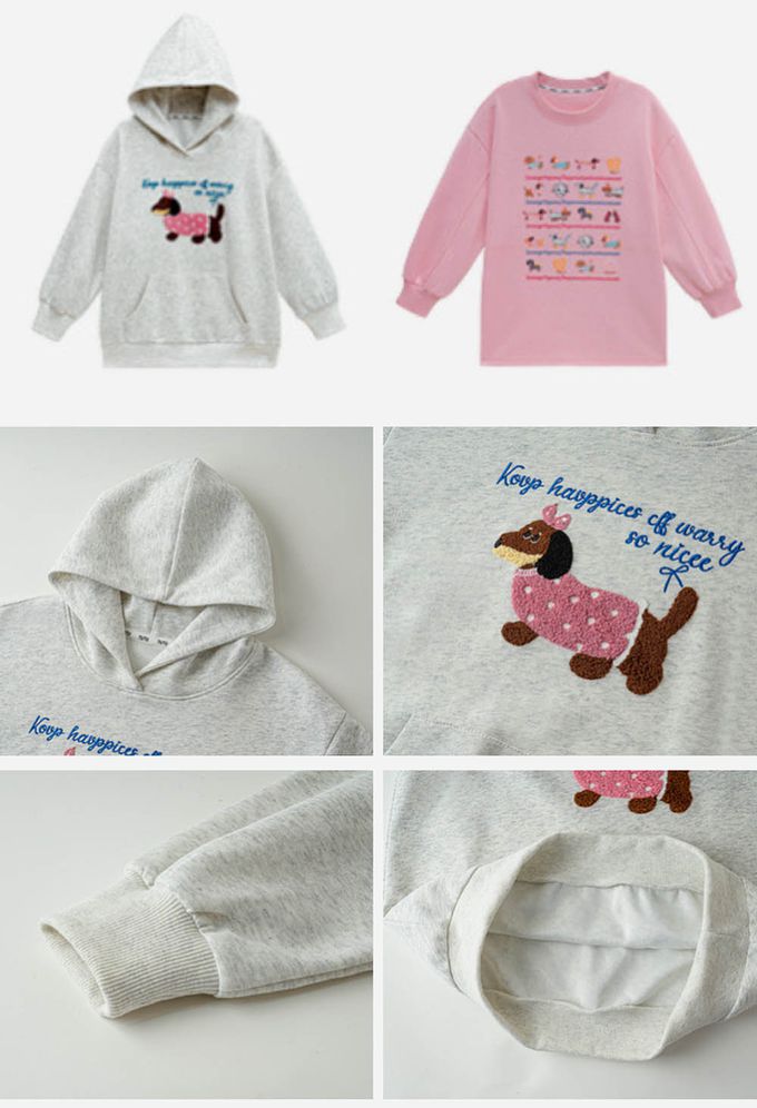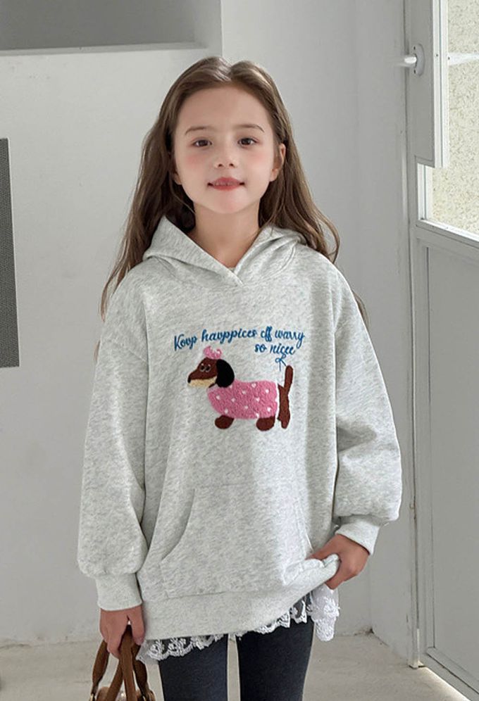 柔軟Q彈中長版連帽長袖上衣-可愛小狗-灰色
