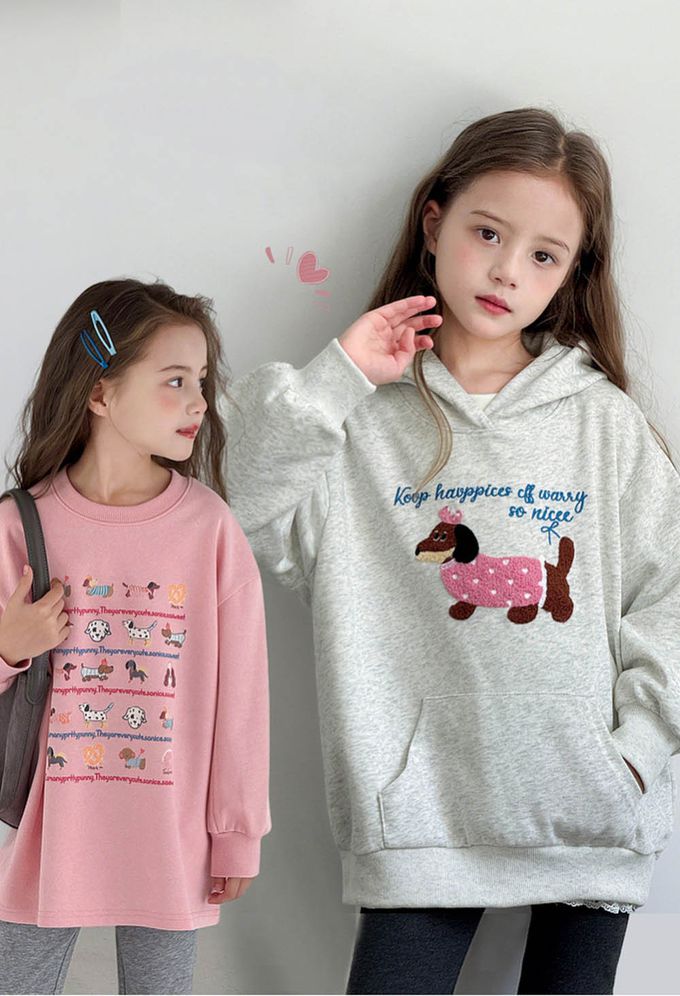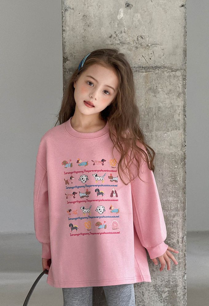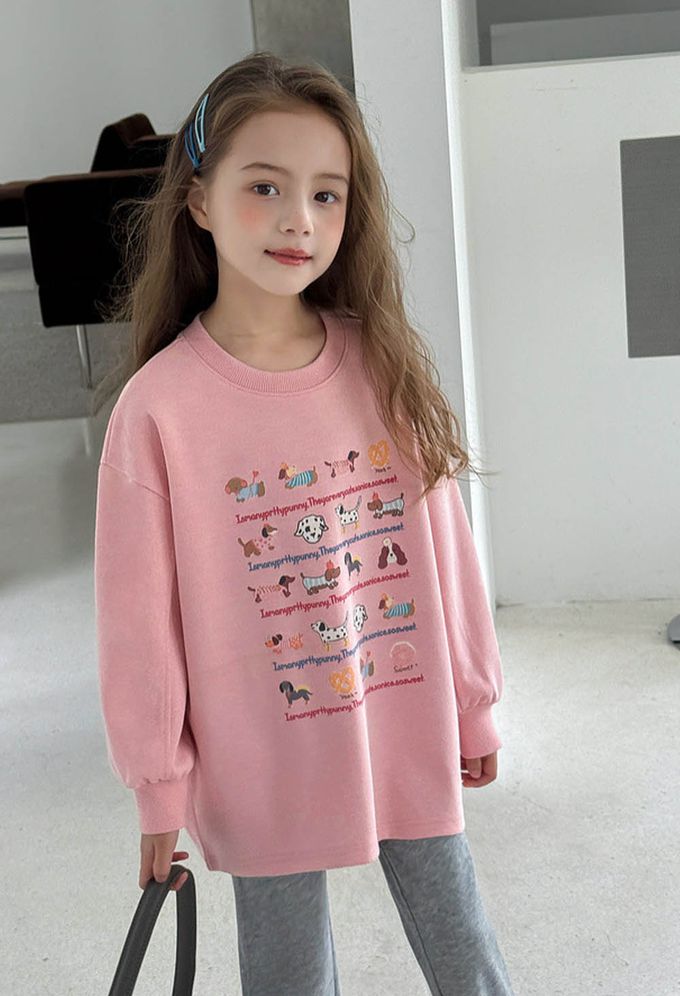 柔軟Q彈中長版長袖上衣-可愛小狗-粉色