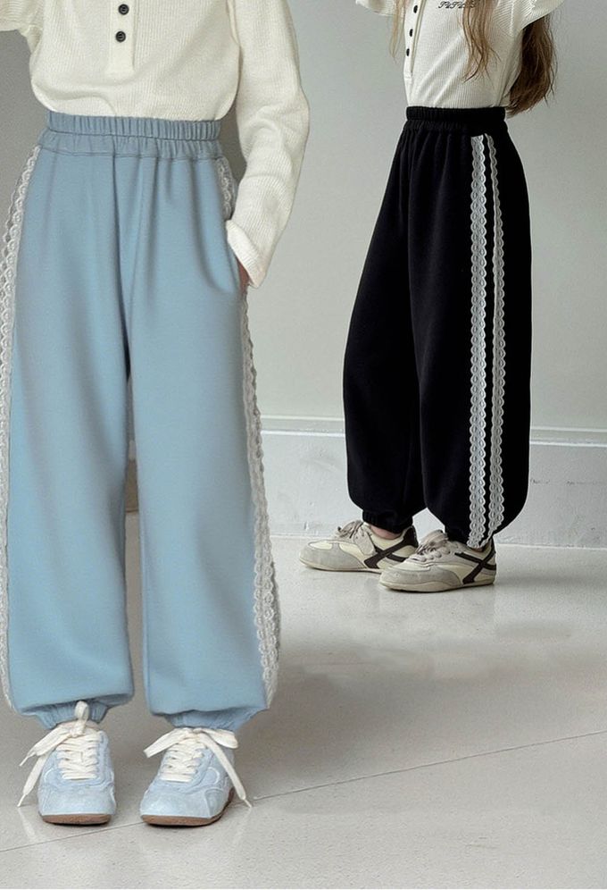 品名:甜酷撞色蕾絲花邊休閒長褲