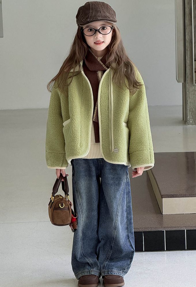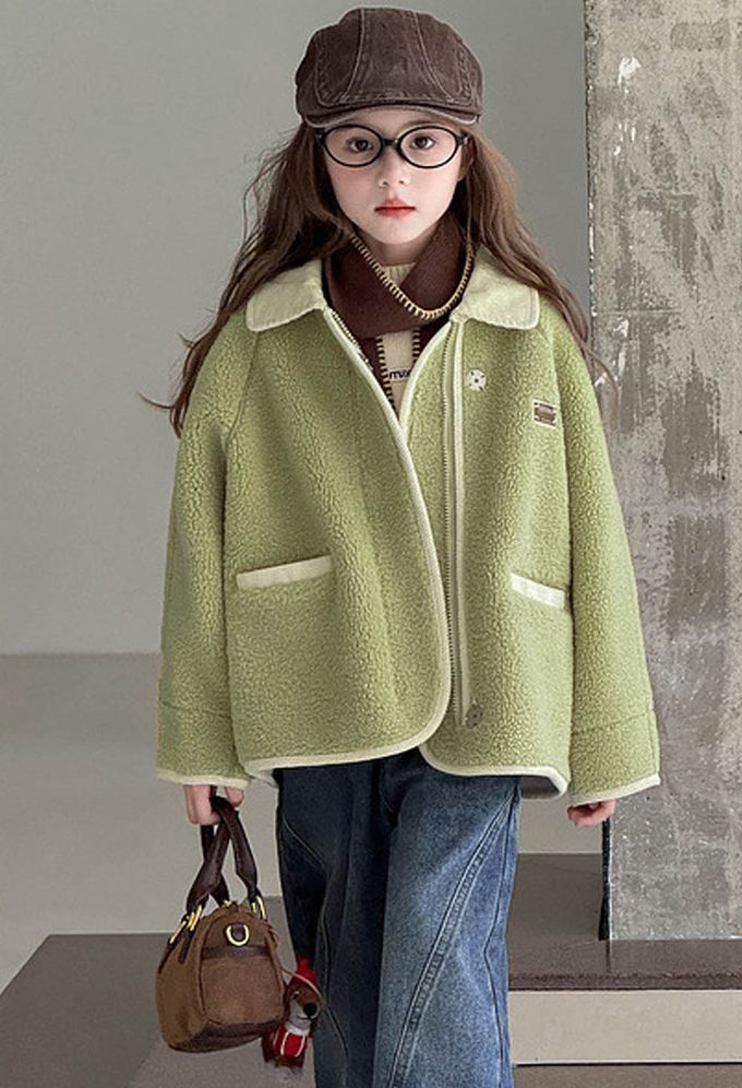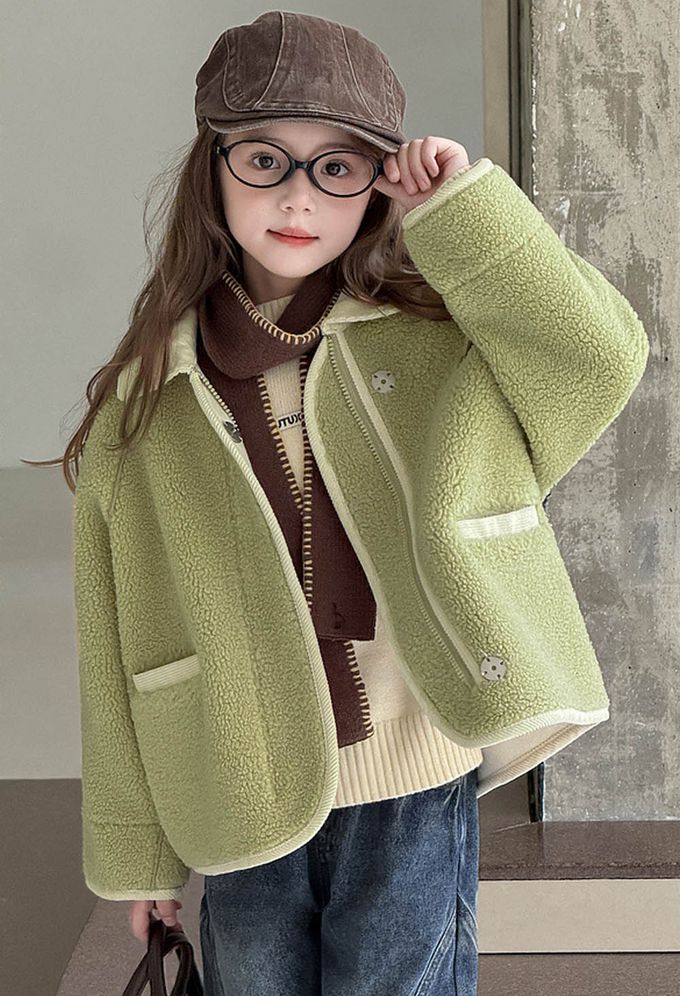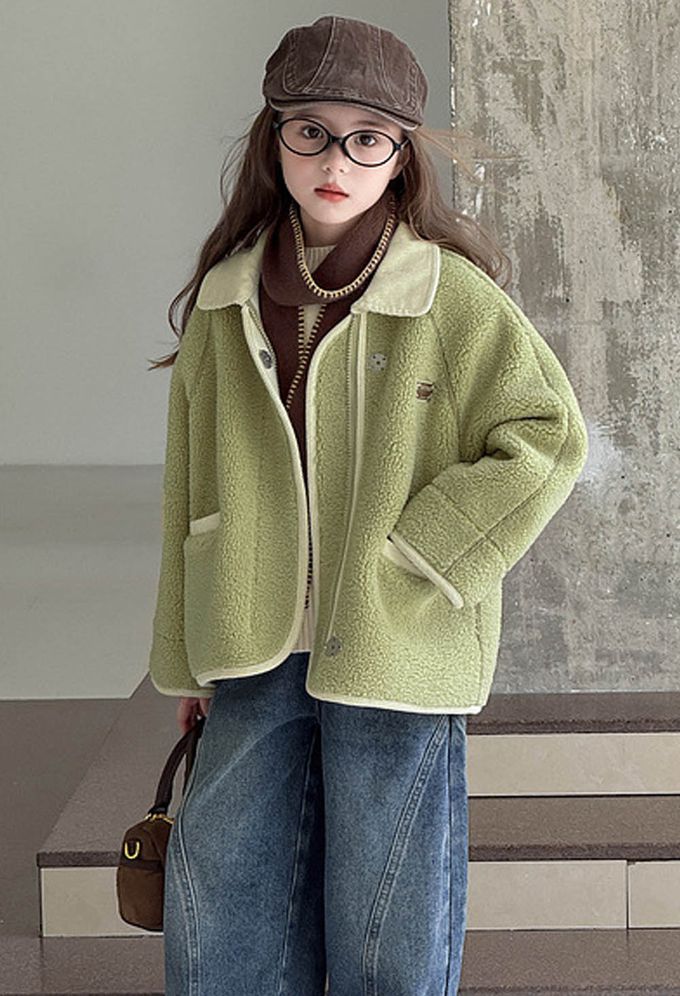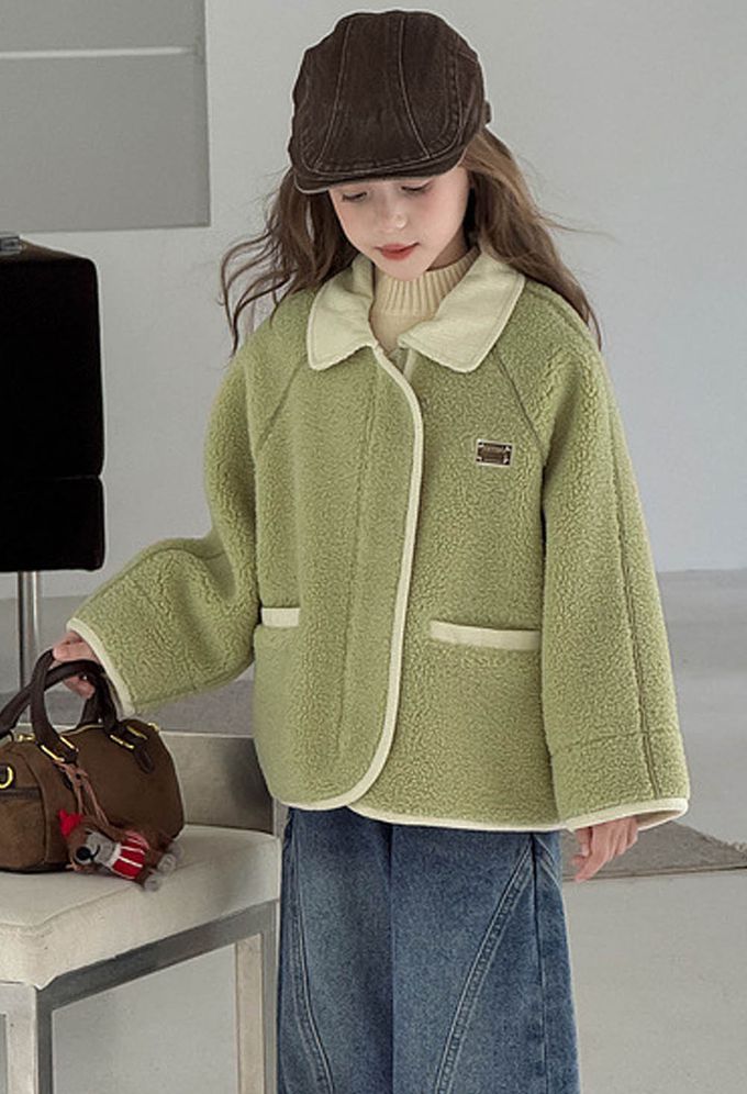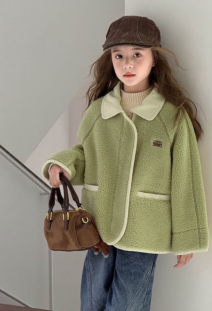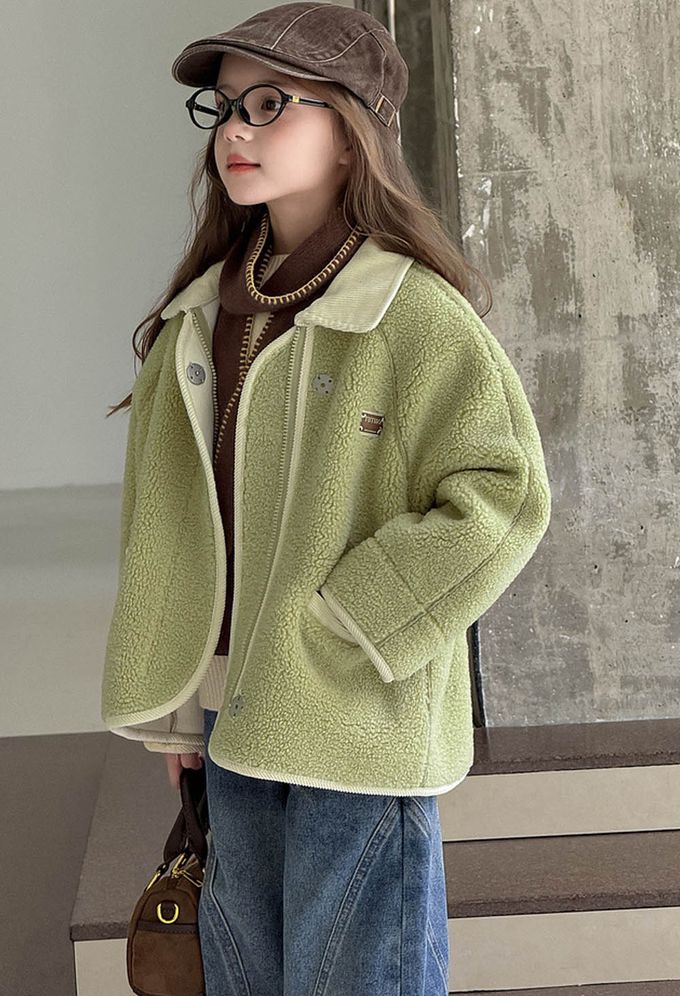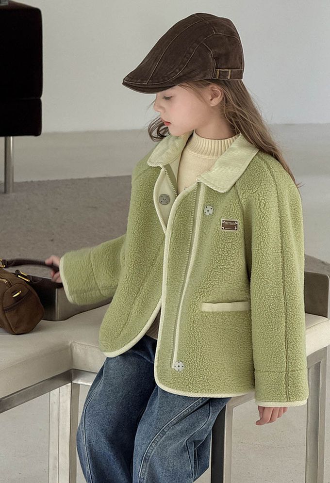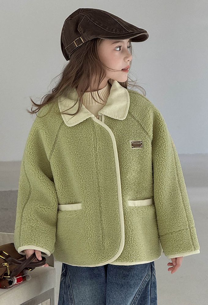 TUTU - 羊羔絨感拼色翻領外套-綠色