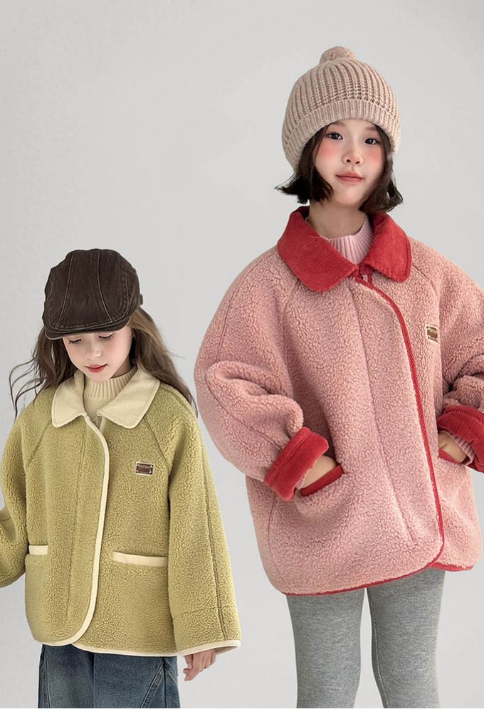 品名:羊羔絨感拼色翻領外套