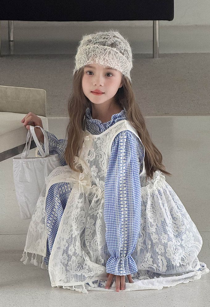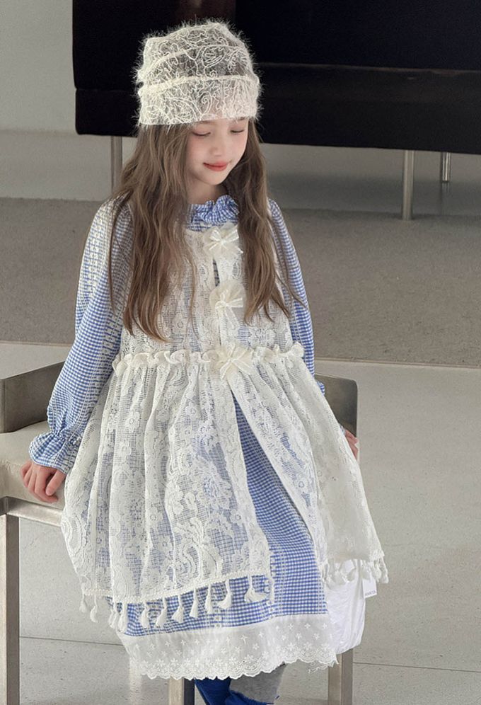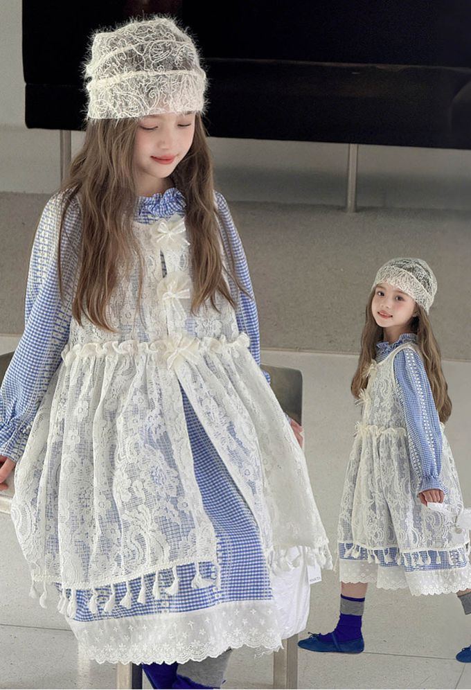 品名:蕾絲罩衫+長袖洋裝兩件式套裝
