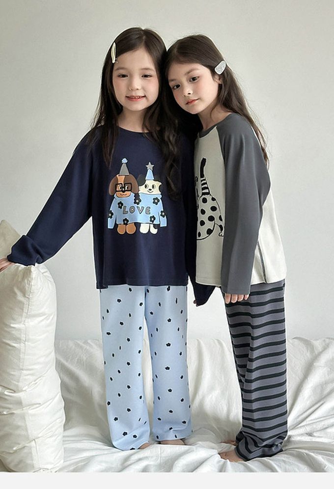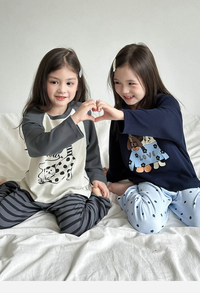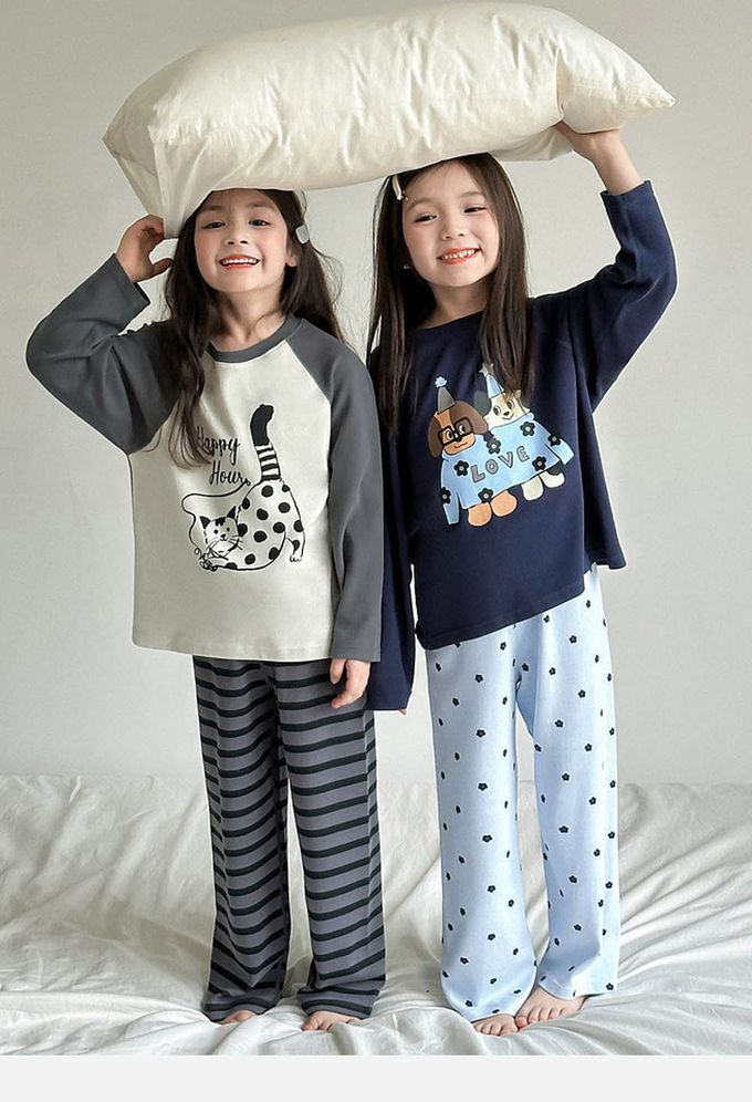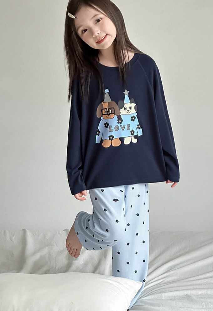 純棉柔軟長袖家居服套裝-卡通印花-藏青