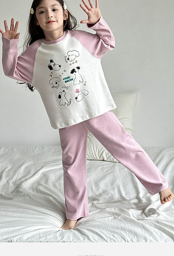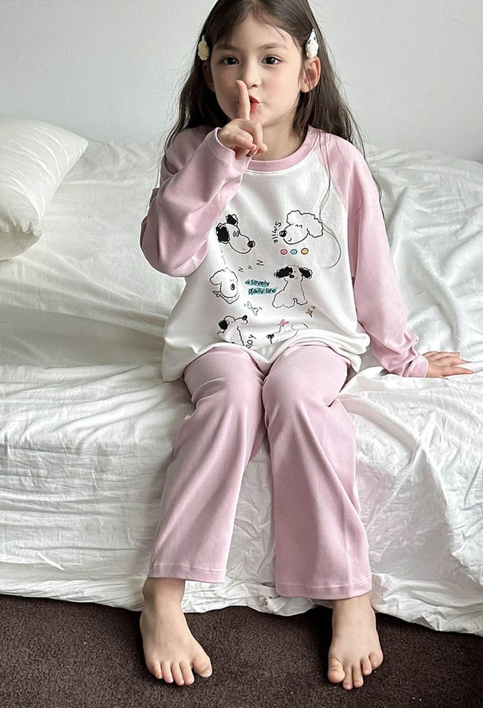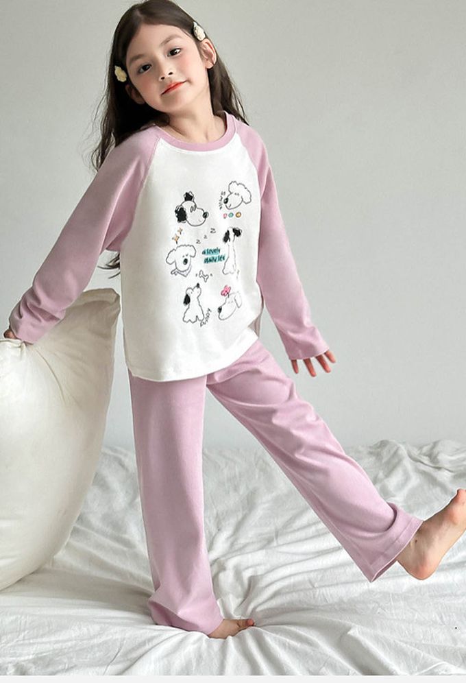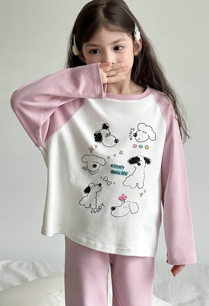 純棉柔軟長袖家居服套裝-卡通印花-粉色