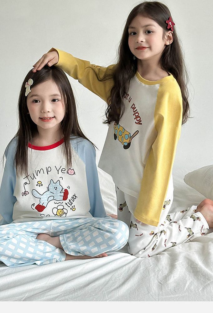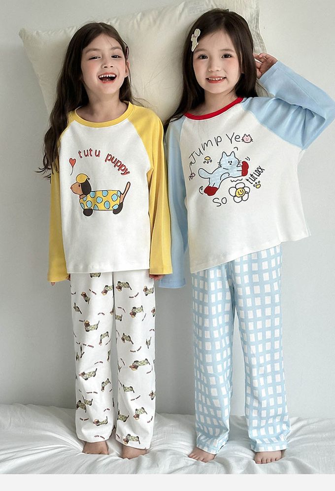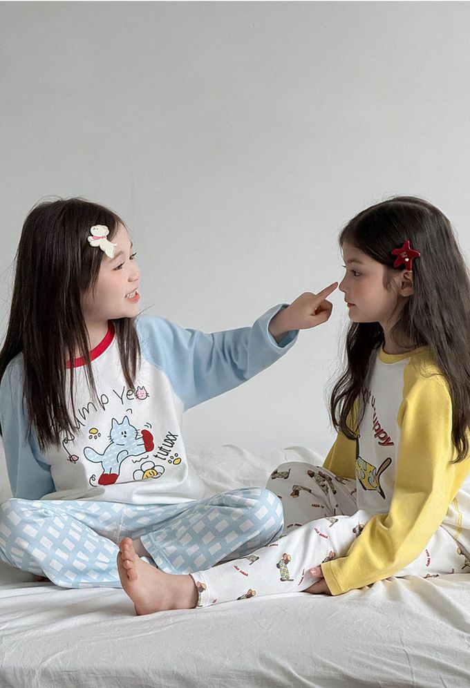 純棉柔軟長袖家居服套裝-卡通印花-黃色