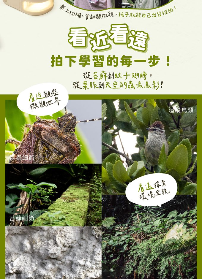 大小剛好適合小手拿著觀察。可以看到葉子脈絡、昆蟲翅膀,甚至日常生活的小細節,讓孩子的好奇心一次滿足,入門科學探索的超棒選擇!