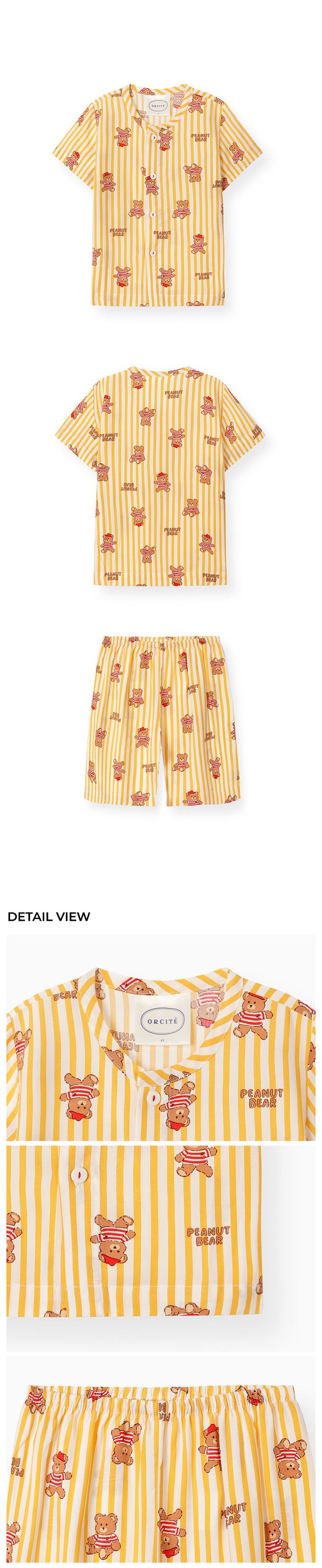 韓國 Orcite - (男寶)輕柔嫘縈短袖睡衣套裝-直紋熊熊-橙黃