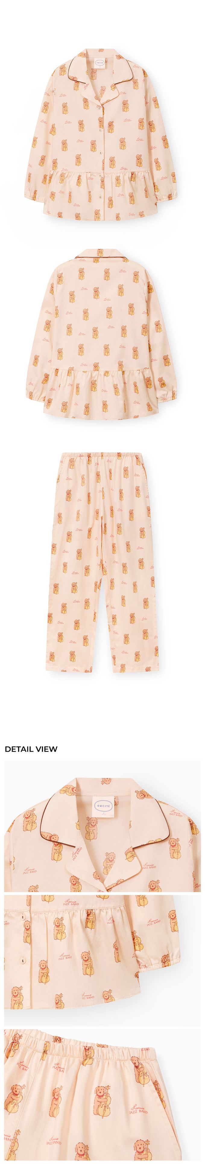 韓國 Orcite - (媽媽)透氣輕柔棉翻領長袖睡衣套裝-狗狗大提琴-杏膚