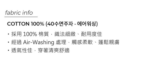 • 100%純棉,觸感柔軟親膚、透氣性佳