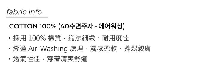 • 100%純棉,觸感柔軟親膚、透氣性佳