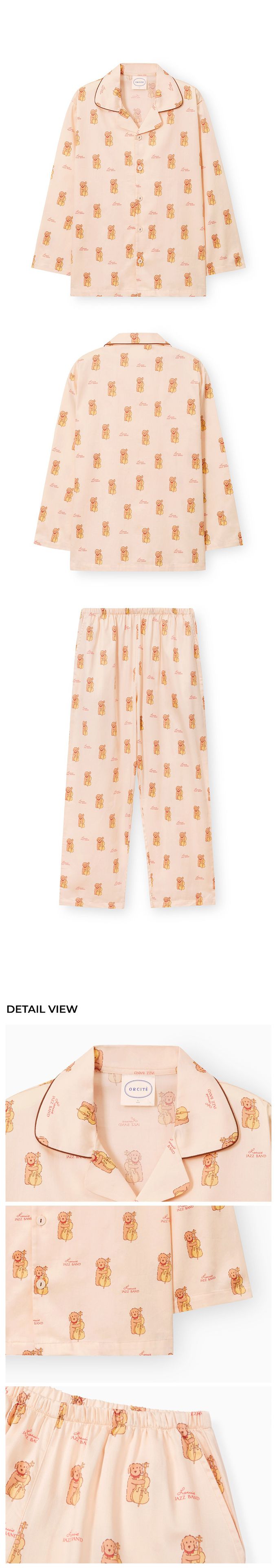 韓國 Orcite - (爸爸)透氣輕柔棉翻領長袖睡衣套裝-狗狗大提琴-杏膚