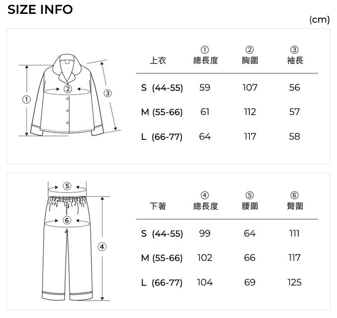 S:身高 153–160cm|平時穿成衣 44–55 號的成人;若 13 歲以上青少年穿童裝 85 號覺得偏小,也可選擇