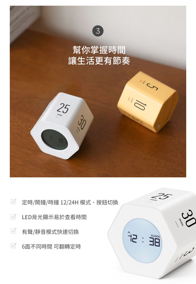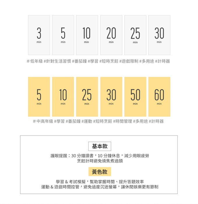 ※白、黃兩色皆有30 / 10分鐘定時,方便提醒孩子掌握用眼30分鐘休息10分鐘護眼原則