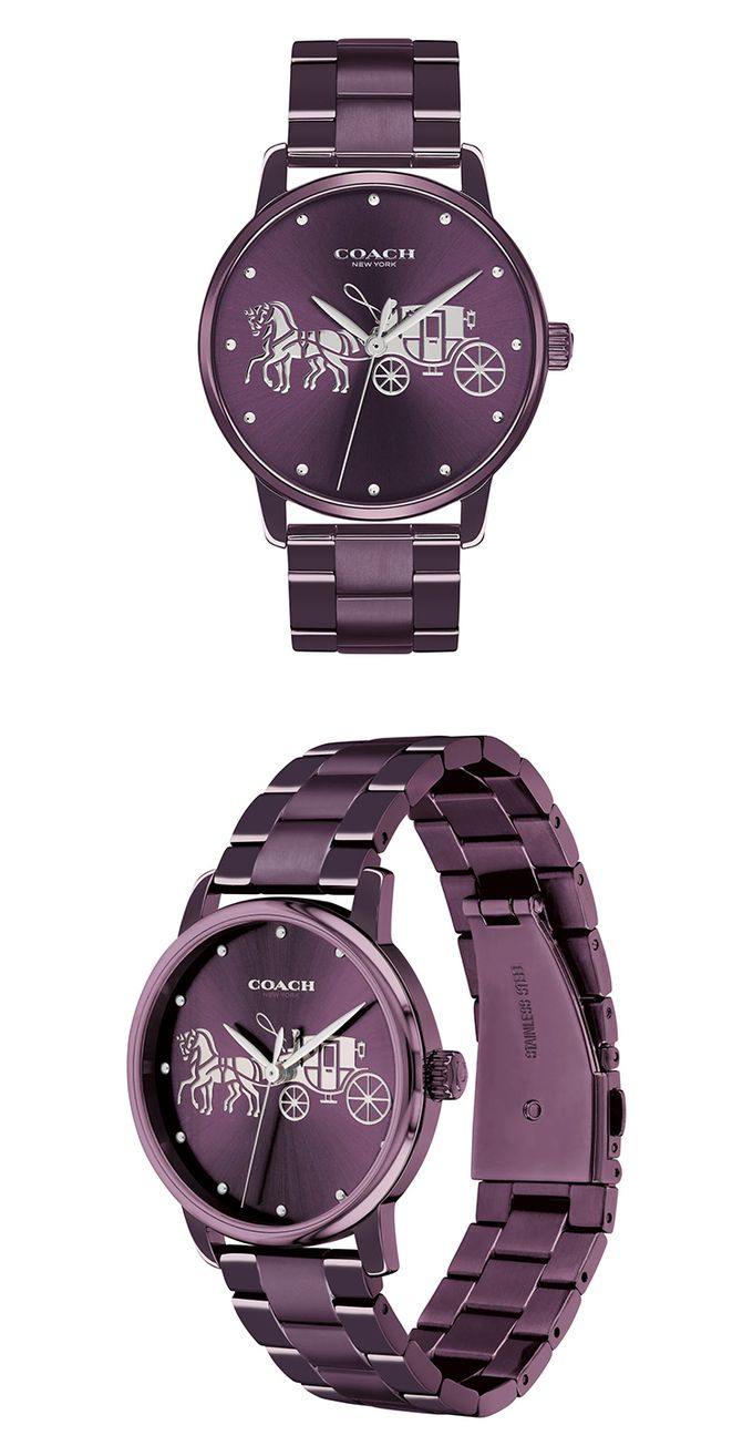 馬車LOGO不鏽鋼錶帶手錶 (紫)