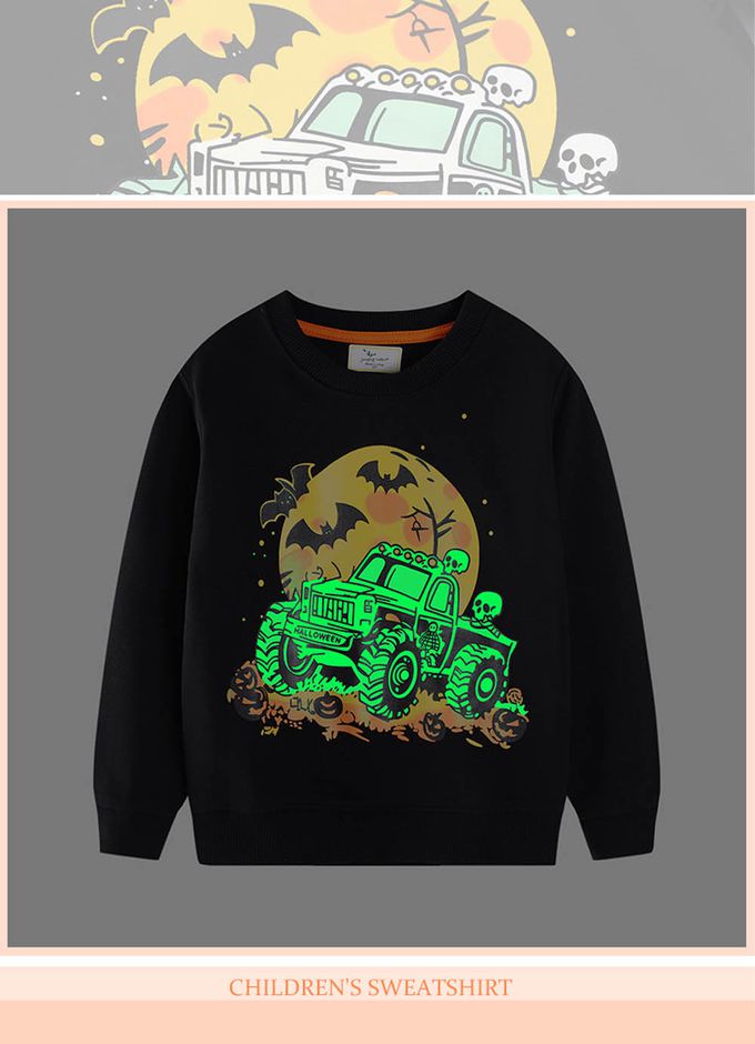 Jumping meters - 夜光圓領棉質長袖上衣/大學T-深海鯊魚-黃色
