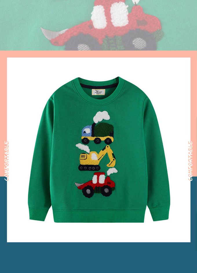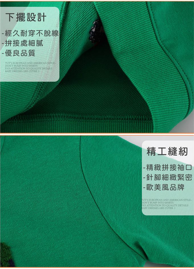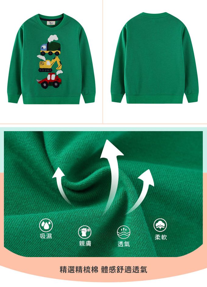 圓領棉質長袖上衣/大學T-毛巾繡車車-綠色