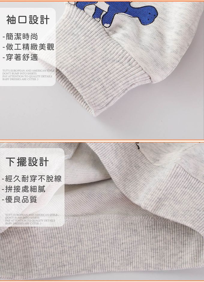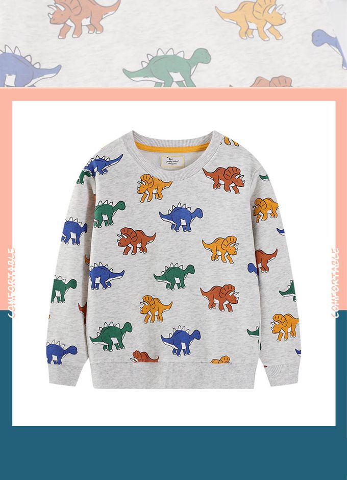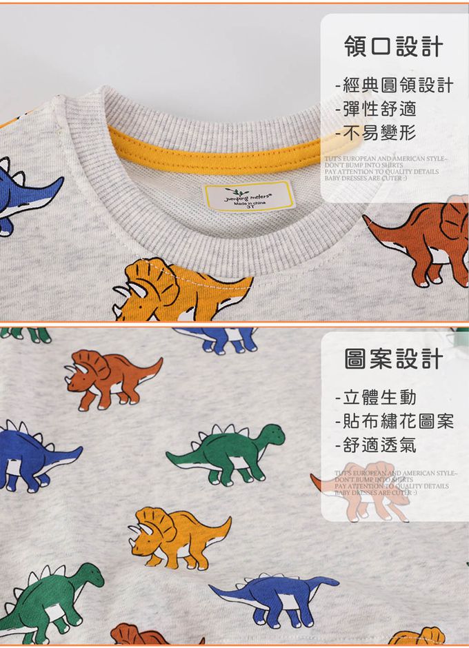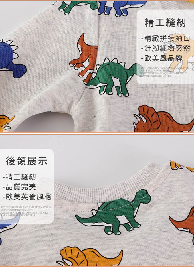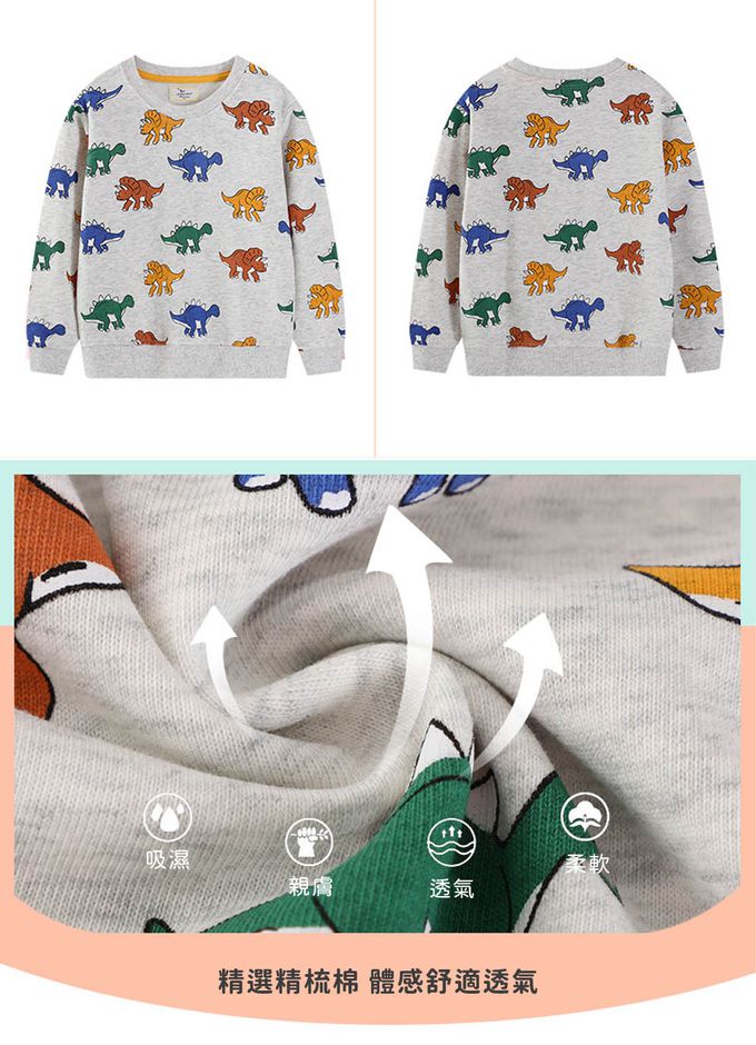 圓領棉質長袖上衣/大學T-彩色小恐龍-灰色