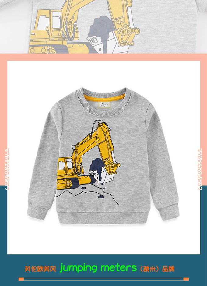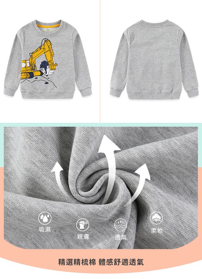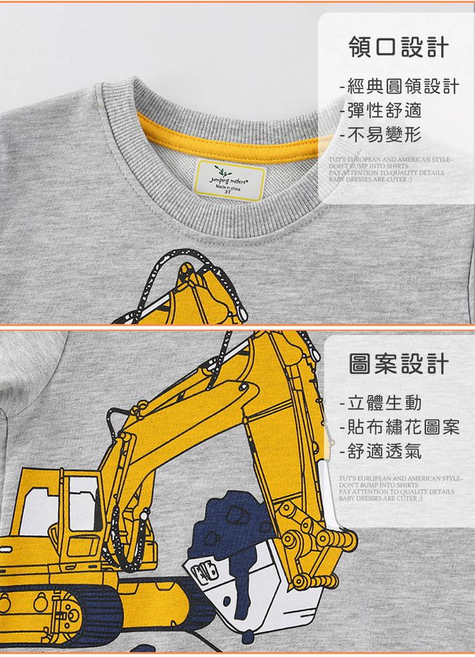 圓領棉質長袖上衣/大學T-挖土機挖土中-灰色