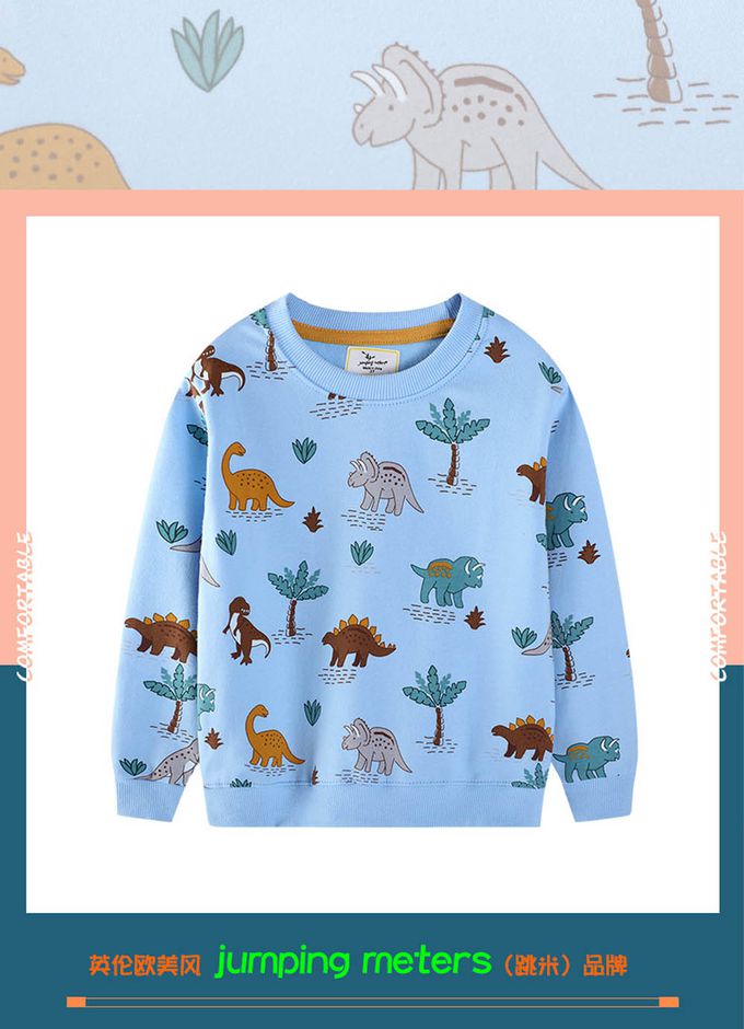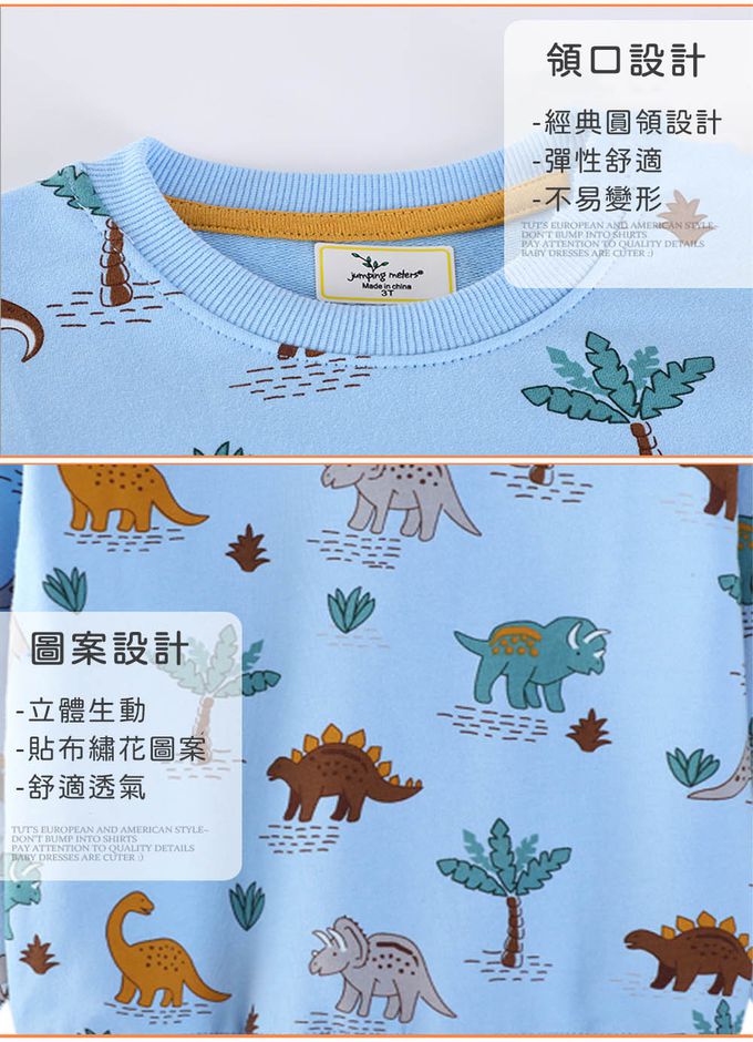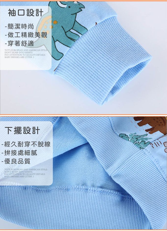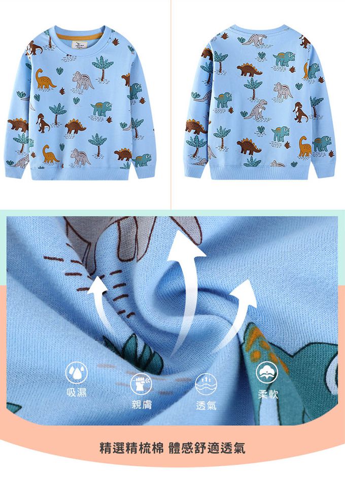 圓領棉質長袖上衣/大學T-恐龍樂園-藍色