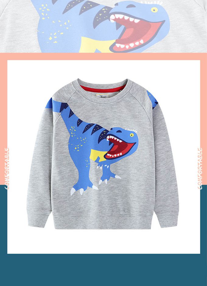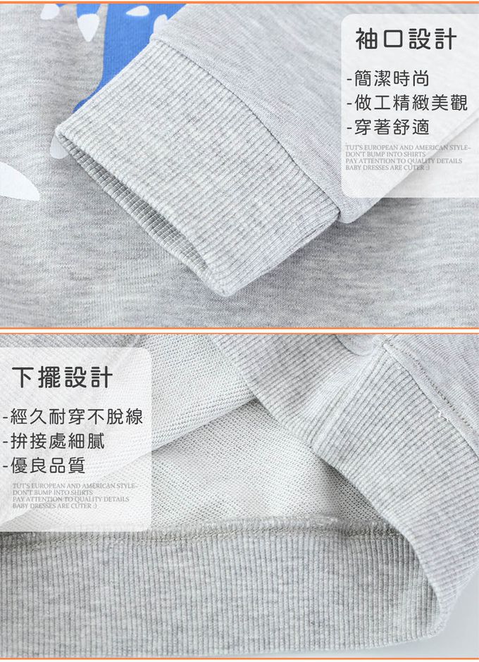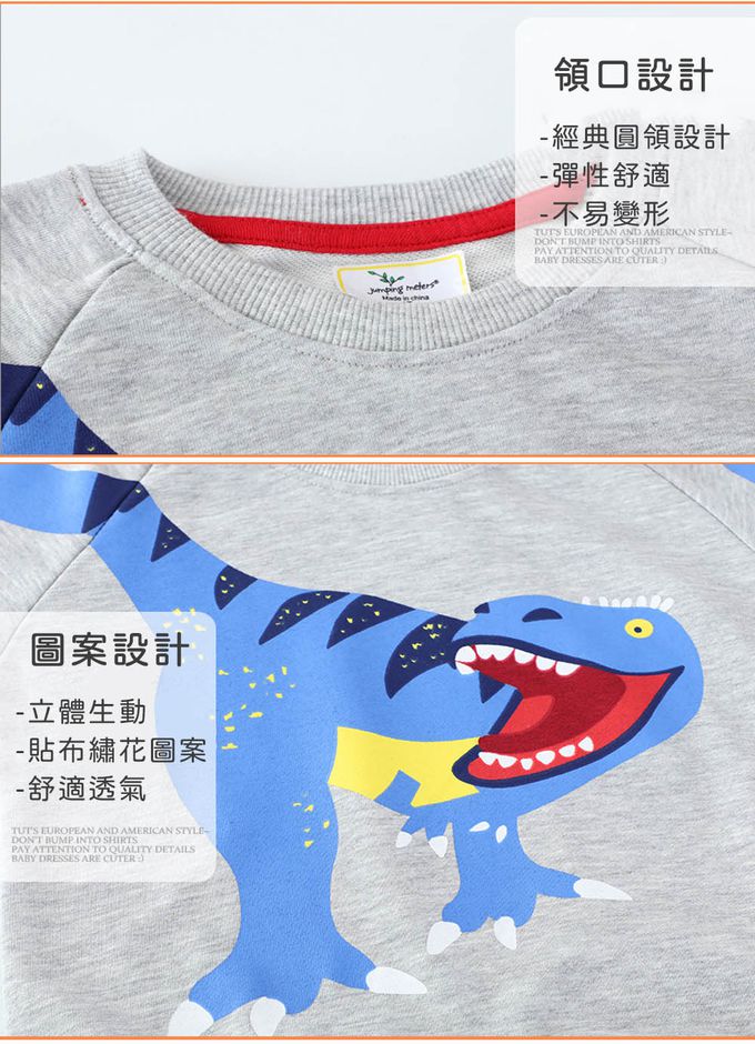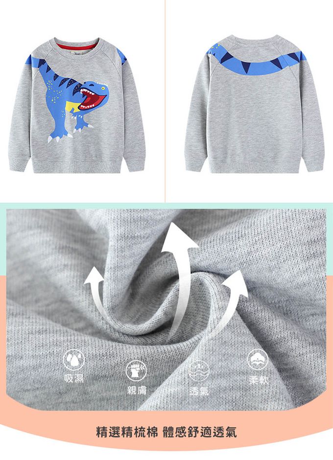 圓領棉質長袖上衣/大學T-長尾巴恐龍-灰色
